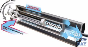 Колебания акустических волн наделены энергией, возбуждающей наши слуховые рецепторы. Задачей глушителя является преобразование колебаний в тепло. Для экспериментов со звучанием прямотока прекрасно подходит такой тип глушителя, как «поглотитель». Его способ работы заключается в поглощении звуковых волн разнообразным пористым материалом. Если звук направить в такой материал, как стекловата, то волоконные соединения материала под действием акустики начнут колебаться и тереться друг о друга, преобразовывая тем самым звук в тепло. Если мы звук направим, например, в стекловату, то он вызовет колебания волокон ваты и трение волокон друг о друга. Принцип действия поглотителя идеально подходит для создания прямоточных глушителей.