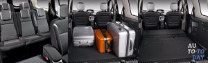 Пара дополнительных мест, которые и преобразуют пятиместную машину в семиместную, расположены на месте багажника. То есть, если в машине будет ехать 5 человек, то дополнительные кресла можно сложить, причем они будут формировать достаточно вместительный багажник. В противном же случае багажника не будет – на его месте будет расположен третий ряд кресел. Но можно поставить только одно кресло, что дает возможность расположить сзади багаж. Именно по этой причине на крыше минивэна часто можно увидеть багажник-бокс, в котором можно перевозить вещи.