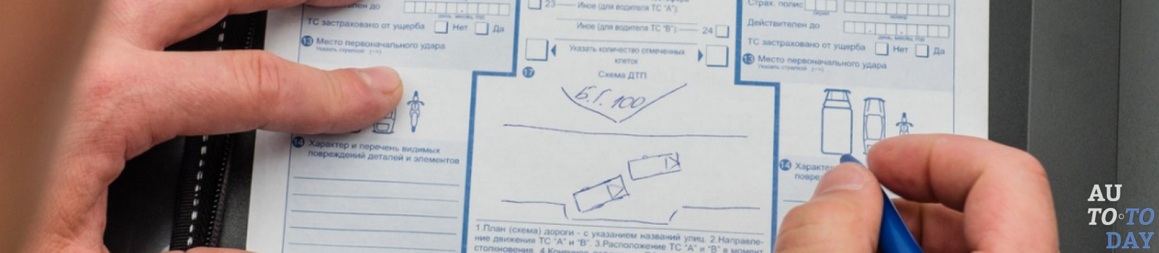 - Заполнить форму бланка. В 1–3 графах указывается место, время и количество ТС (2). В четвёртом ставится прочерк, а в 5,6 и 8 нужно указать «нет». Седьмой пункт должен содержать показания свидетелей. В графах 9–12 вписывается информация об автомобилисте, ТС и страховом полисе. 13 пункт содержит рисунок авто, на котором следует указать место удара. 14 пункт должен включать перечень повреждений. Графа 15 — замечание с указанием вины или невиновности. 16 пункт — обстоятельства аварии, а 17 — схема ДТП. Также необходимо заполнить обратную сторону бланка. В определённых местах обязательно должны стоять подписи автомобилистов.