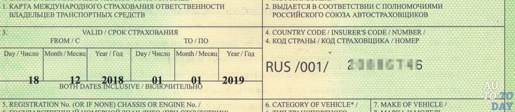 - период актуальности договора: он может составлять от 15 суток до 1 года, а заканчиваться должен уже после того, как собственник машины вернётся в родную страну;
