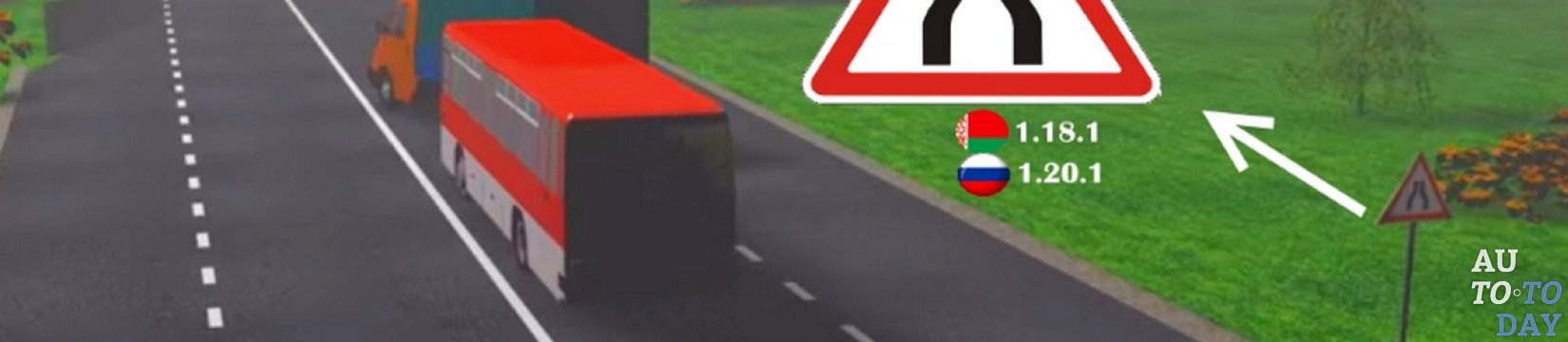 Такое сужение не менее опасно, чем крутые повороты и ограничение видимости, поэтому предупреждающие указатели 1.20 размещаются в таких случаях: