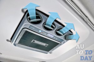 Микроклимат в салоне может быть разбит на несколько зон. Диапазон температур, в которых работает климатическая система в автоматическом режиме - обычно от 18ºС до 28ºС. Если кондиционер находится в режиме "Авто", он включается вместе с зажиганием, выводя на панель управления показания датчиков и значение заданной температуры. Можно задать температуру за рамками этого диапазона, в этом случае установка будет работать с максимальной хладо- или теплопроизводительностью. При температуре наружного воздуха менее 5ºС система автоматически выключается.