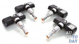 Датчик давления. Это довольно сложное устройство, которое выполняет функции измерение давления и температуры воздуха внутри шин. Кроме этих двух датчиков оно включает в себя еще специальные электронные компоненты, аккумулятор для независимой работы и антенну, которая передает информацию водителю. Такой датчик устанавливается на каждое колесо машины и занимает на нем место штатного вентиля. Информация о давлении передается в виде импульсов с периодичностью примерно в 1 минуту. Аккумуляторы на такие датчики устанавливают самые надежные, они обеспечивают бесперебойную работу на протяжении 7-10 лет. Замену аккумулятора проводить нельзя, после его разрядки проводится полная замена датчика.