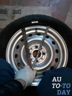 После того, как неисправная покрышка была снята с диска, нужно тем же самым образом надеть сменную покрышку. Нужно постепенно проходить ее по периметру и надевать на диск с помощью лопаток. Очень важно не забывать и о безопасности. Бывает так, что при проведении данной процедуры сама монтажная лопатка может отскочить от упругости покрышки, вследствие чего автовладелец получит нежелательные травмы.