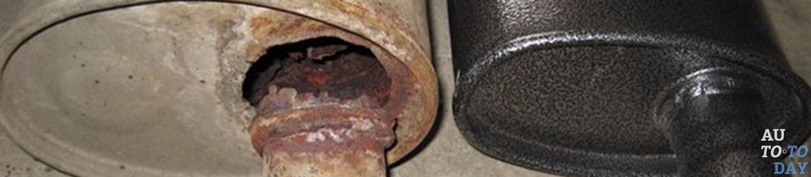 Зачастую сквозное проедание ржавчиной происходит в местах соединения трубы и корпуса глушителя. В таком случае, нужно будет полностью удалить участок, подвергшийся коррозии, который пришёл в негодное состояние, заменить его и снова приварить глушитель. Чтобы увеличить ресурс детали, лучше покрасить её после замены. На заводах, как показывает практика, используются недостаточно качественные красители, из-за чего система выхлопа так быстро и приходит в негодность. Если вы отремонтировали свой глушитель, нужно будет подумать и о его дальнейшей защите. Возьмите щётку и абразивные материалы и вычистите все элементы выхлопной системы, затем промойте всё и обезжирьте.