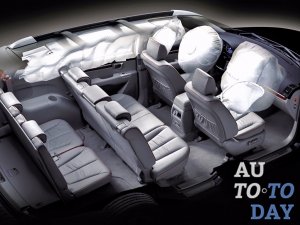 - боковыми подушками безопасности оснащаются спинки кресел, подголовники и места над дверными проёмами. Эта группа подушек безопасности обеспечивает дополнительную фронтальным защиту области таза и брюшины в случае возникновения ДТП.