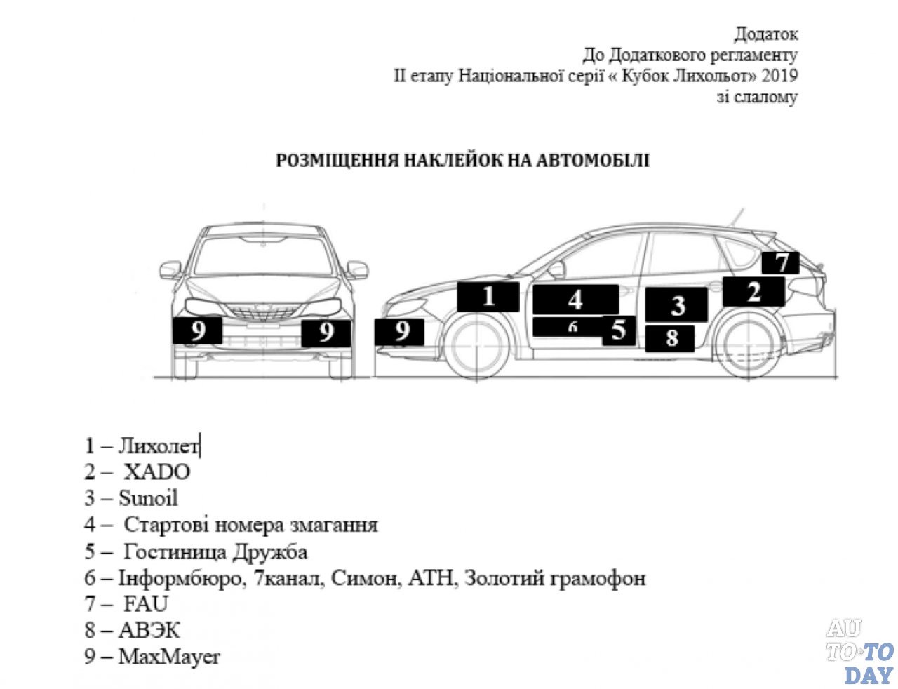Информация для пилотов: схема размещения наклеек на II этап Национальной серии по автослалому "Кубок Лихолет 2019"