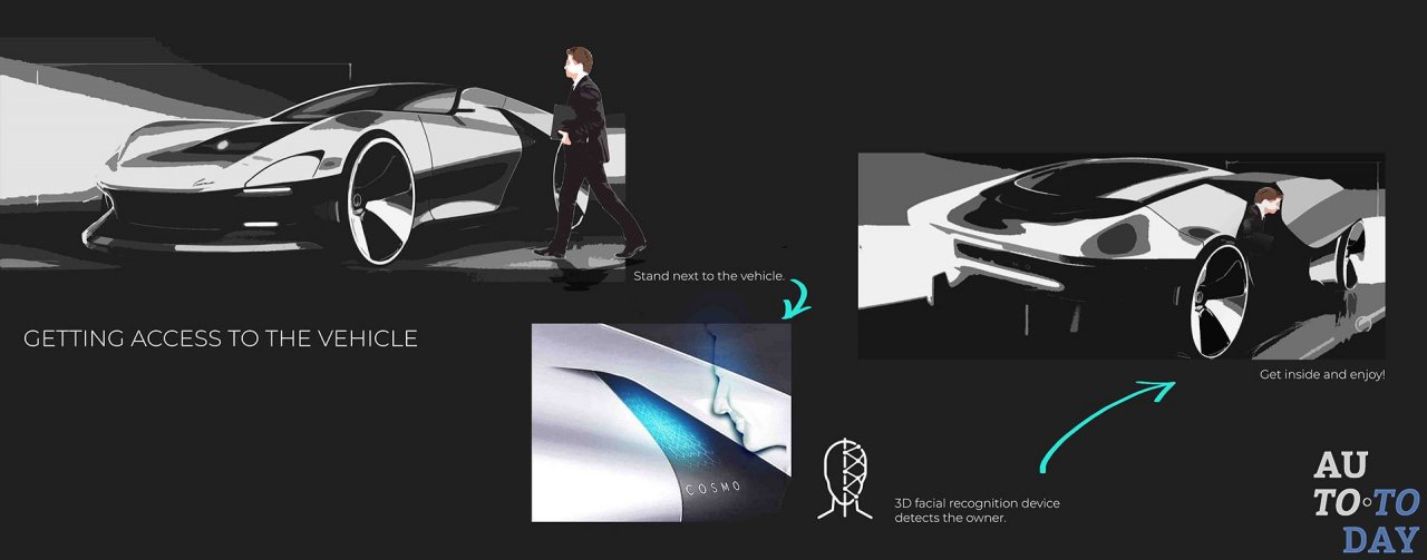 На бумаге эта концепция 2027 года остается верной оригиналу как двухместная спортивная модель. Mazda Cosmo оснащается электрической силовой установкой, автономными технологиями 4 уровня и функцией распознавания лиц. Первоначально автомобиль был разработан как дипломная работа студента и построен из глины размером 1:5.