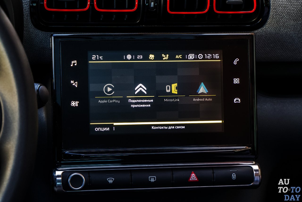 На мультимедиа и ее 7-дюймовый сенсорный дисплей возложено очень многое. Если с управлением музыкой и подключенным смартфоном справиться легко благодаря поддержке протоколов Apple CarPlay и Android Auto, то с некоторыми более важными задачами дело обстоит сложнее. Так, управление климат-контролем также исключительно сенсорное. Причем заметно, что при подключенном гаджете инфотеймент становится более задумчивым. Зато можно менять несколько предустановленных профилей, в которых можно отдельно сохранять радиостанции.