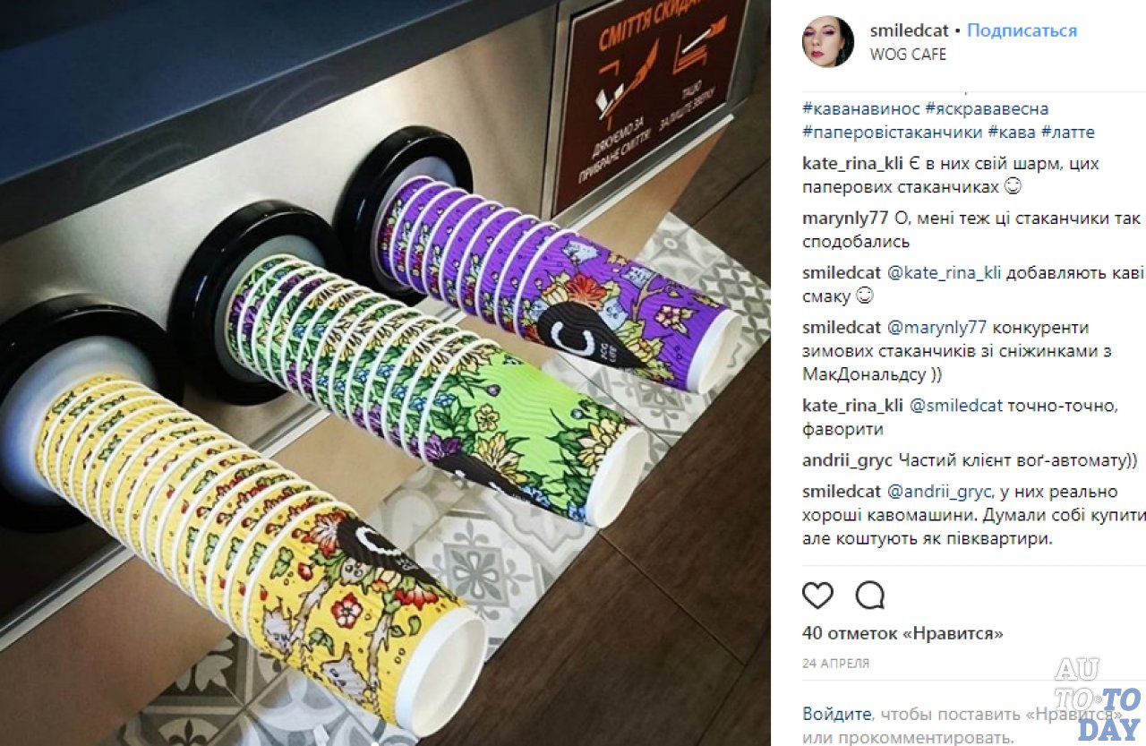 Крупнейшая в Украине сеть АЗК WOG запустила этой весной новый дизайн бумажных стаканов, к авторству которых привлекла Instagram художницу Виталину Бойко. При этом продажи кофейных напитков выросли за месяц в на 17%.