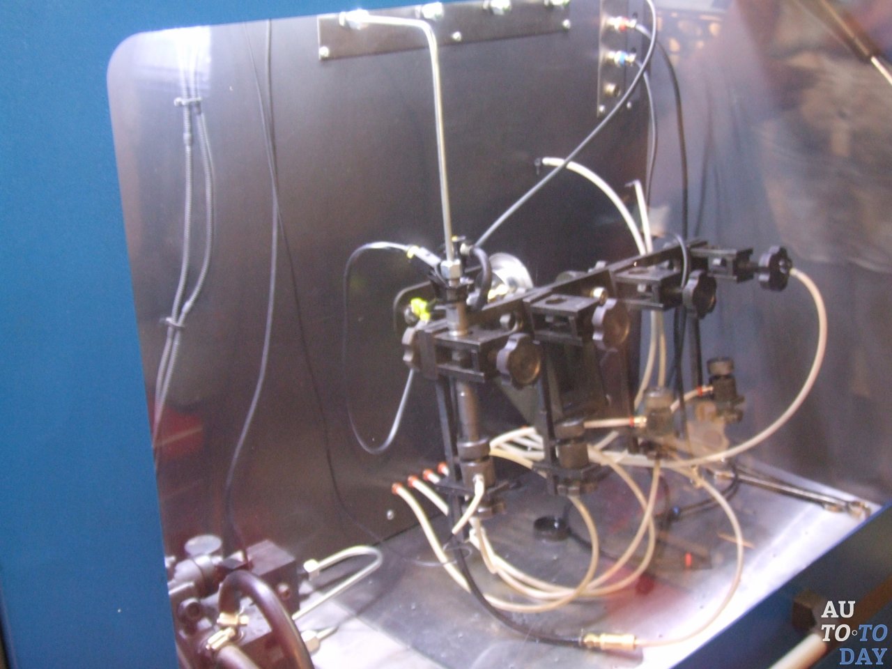 Контроль температуры осуществляется по каждому каналу слива с инжектора , так и внутри бака. Устройство крепления инжекторов имеет 3 степени свободы, оно позволяет надежно фиксировать форсунку без деформаций соединительных трубопроводов. Для проведения замеров в ручном режиме предусмотрено удобное пользовательское меню, в основном же все тесты проводятся в автоматическом режиме.