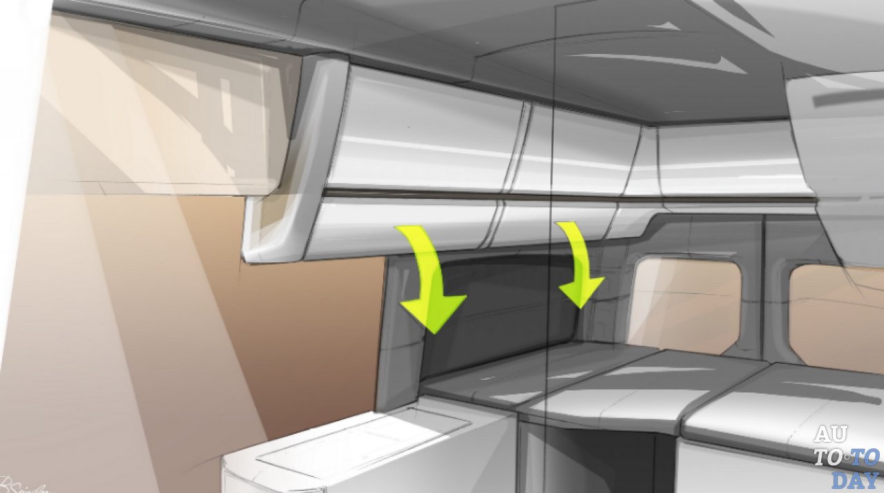 Отмечается, фургон может позаимствовать несколько важных элементов у концепции California XXL, в том числе передние и задние сидения вращающиеся на 180 градусов и кровать, длина которой составляет около двух метров.