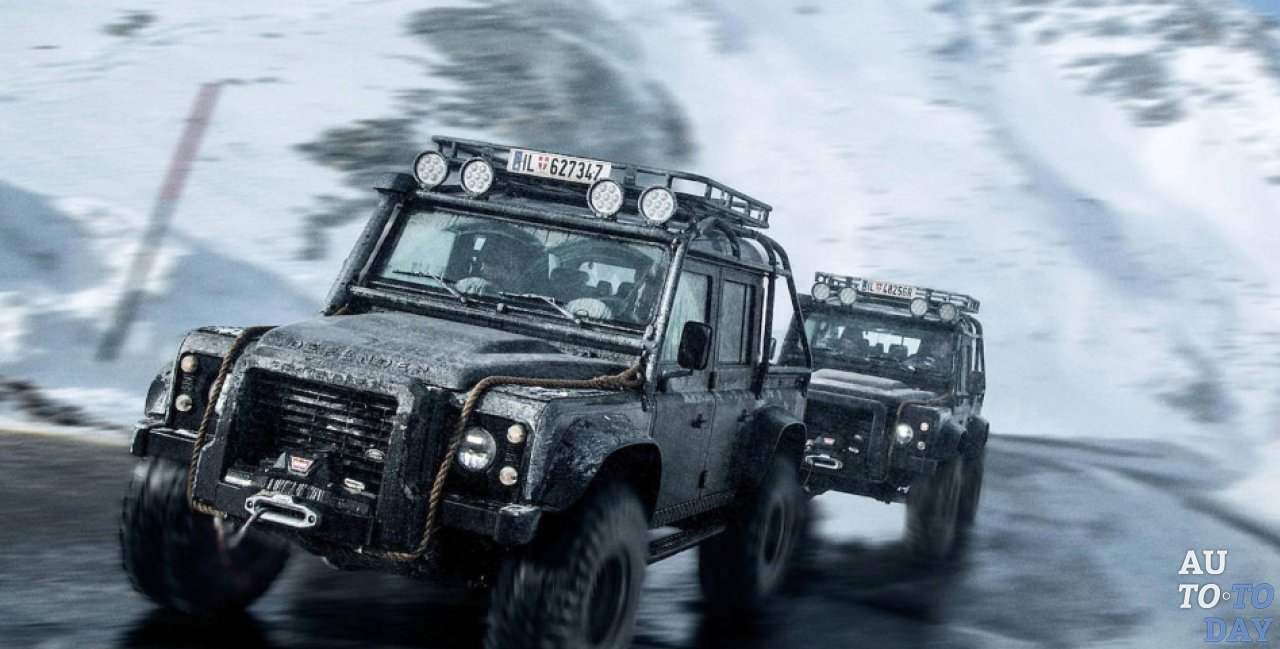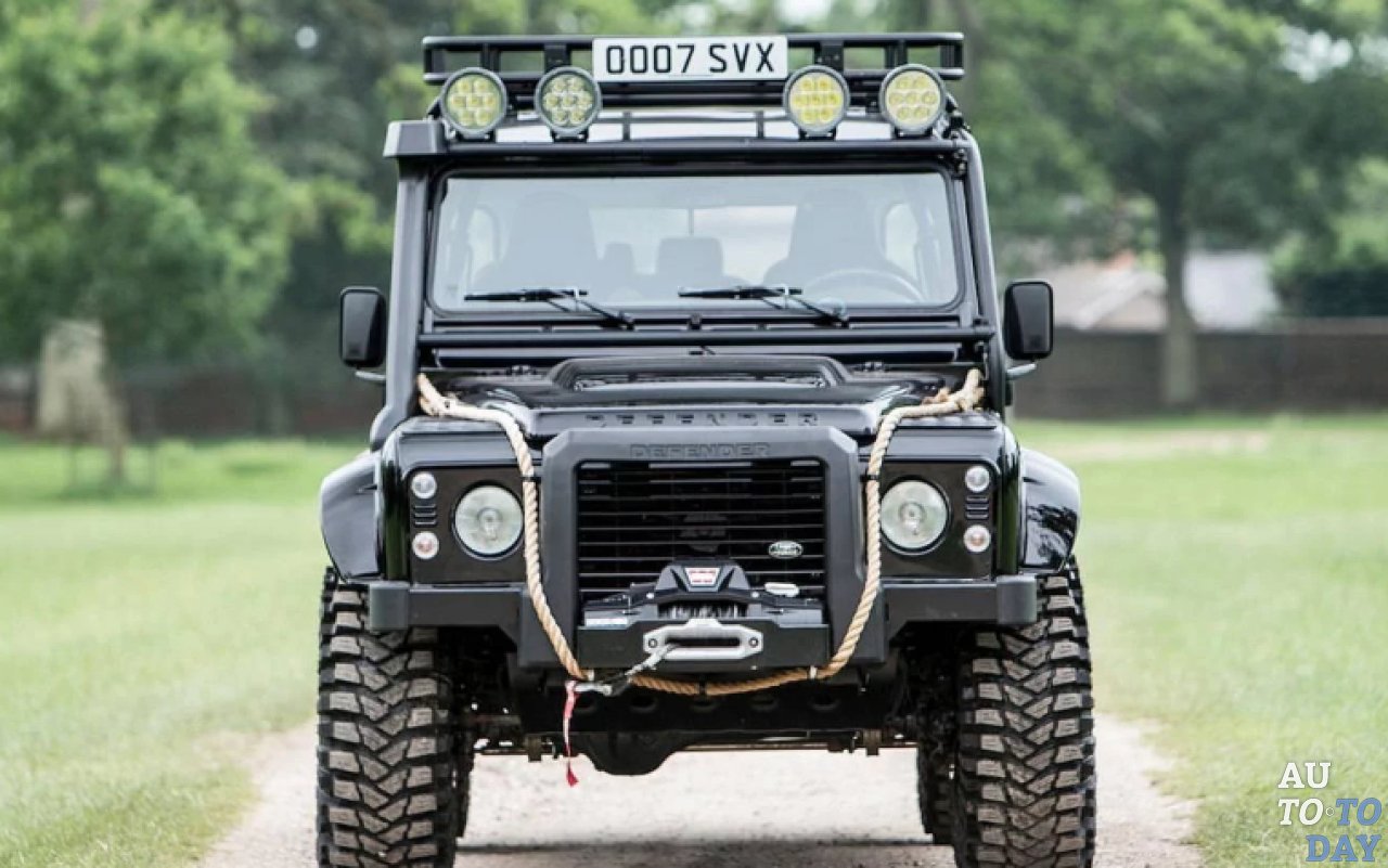 Land Rover Defender SVX оснащается массивными 37-дюймовыми шинами, подвеской Bowler с амортизаторами Bilstein, сиденьями Recaro, ремнями безопасности, лебедкой Warn и дизельным двигателем, обеспечивающим 185 лошадиных сил и 500 Нм крутящего момента. Конкретно этот автомобиль, выставленный на торги, в отличии от других 9 моделей, действительно снимался в фильме, а не только участвовал в рекламной кампании. Подтверждением этому служат царапины и следы на капоте от каскадеров.