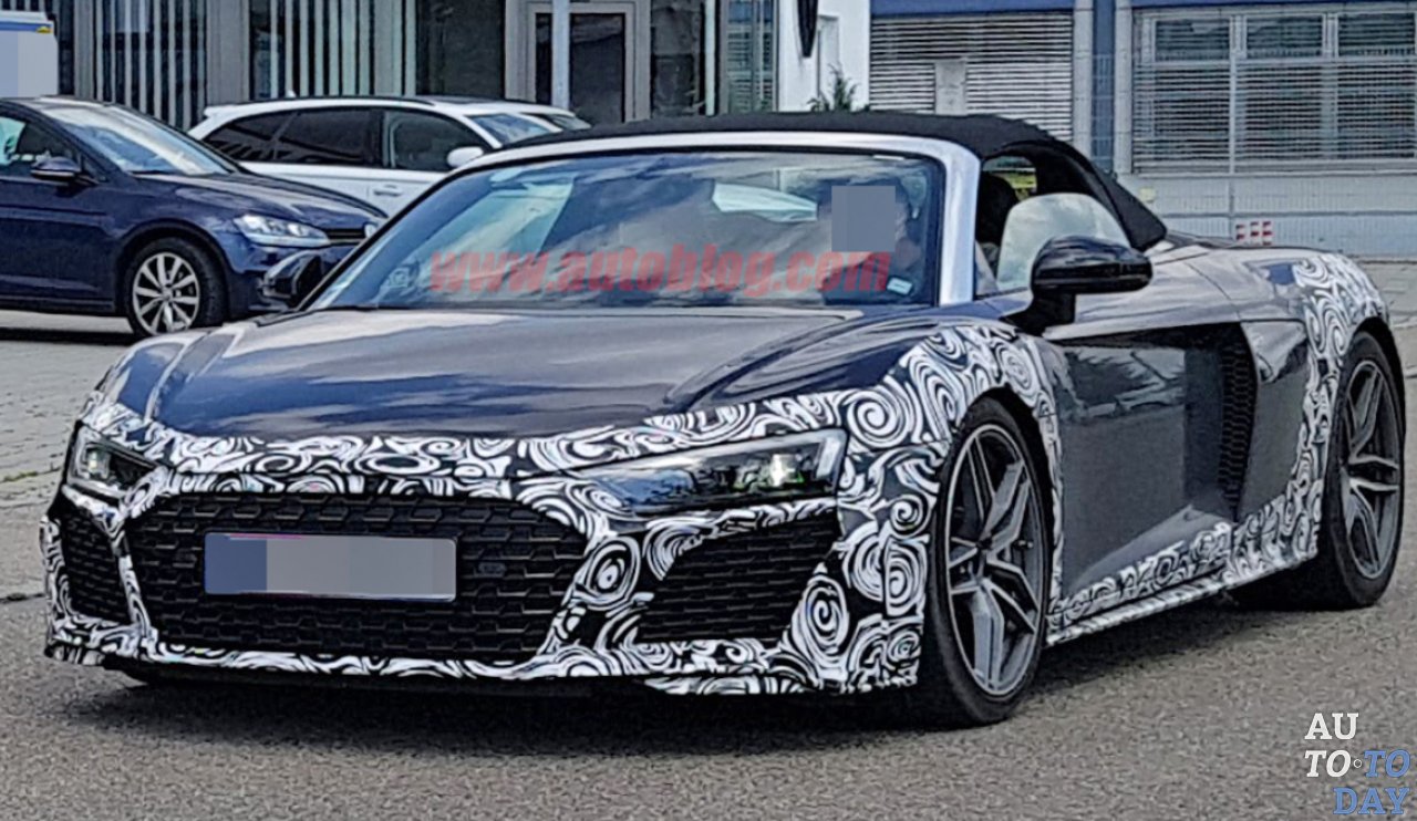 Недавно модернизированный Audi R8 появился с небольшим слоем камуфляжа, расположенным на передней и задней панелях.