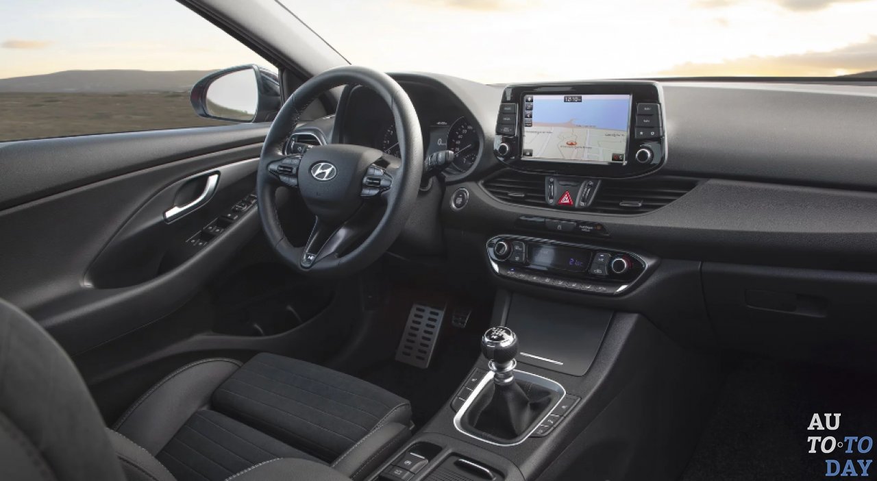 В салоне Hyundai i30 N Line размещаются спортивные сидения, рулевое колесо с отделкой из перфорированной кожи и особый рычаг переключения передач. В общем компания называет интерьер «просторным и практичным» с достаточным количеством пространства для всех пассажиров.