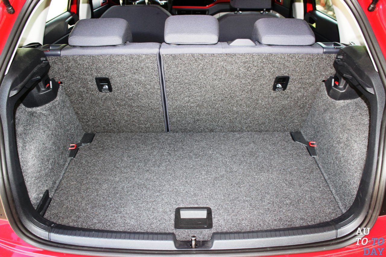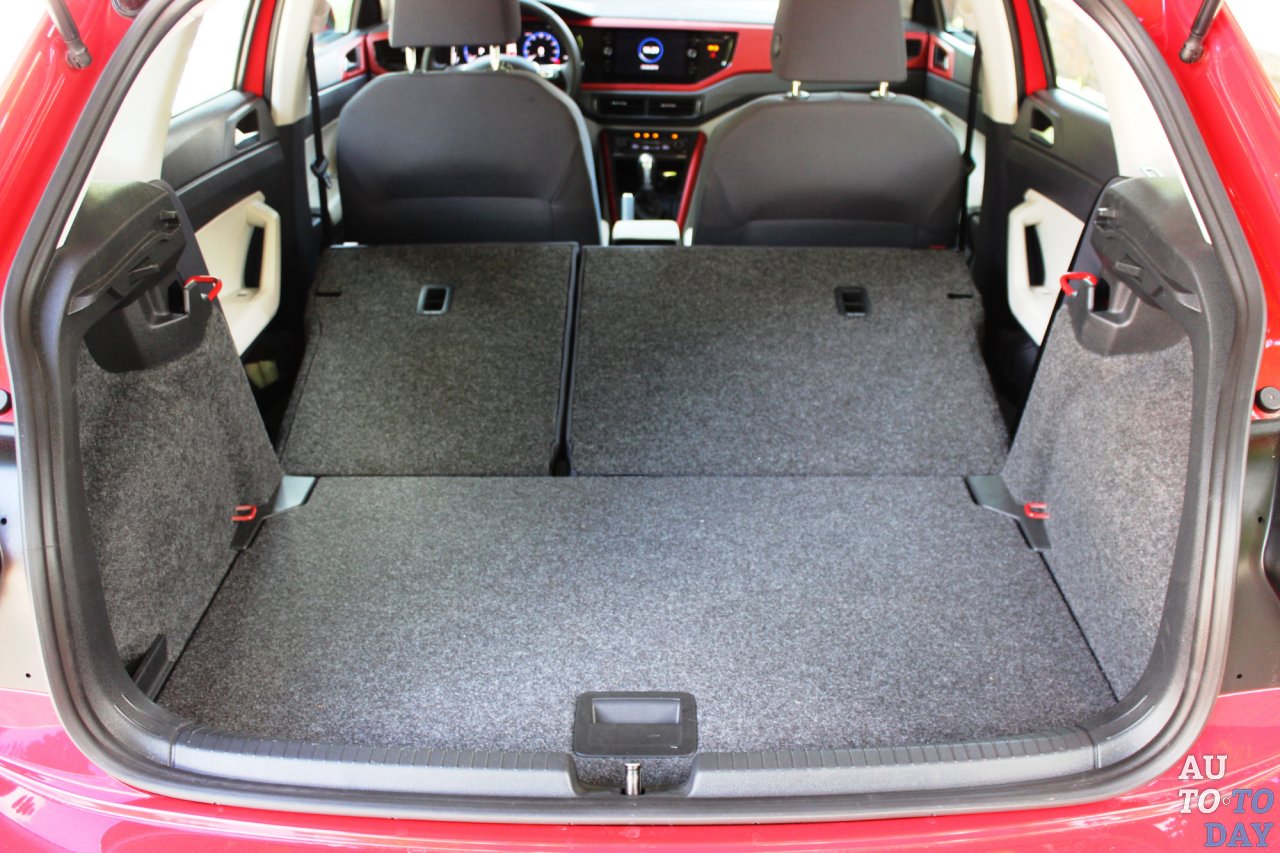 Целых 355 литров – такой теперь объем багажного отсека у Polo, что значительно больше, чем у предшественника (было 280 литров). А со сложенными спинками второго ряда получаем целых 1125 литров. В угоду тому, чтобы при складывании образовывался ровный пол, уровень багажника достаточно высокий. Под полом спряталось временное запасное колесо.