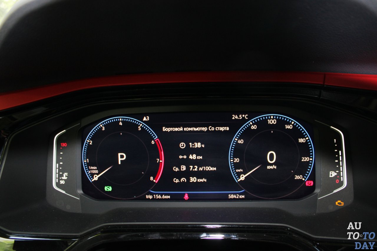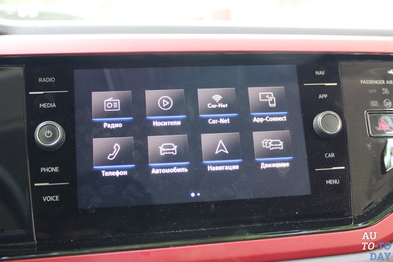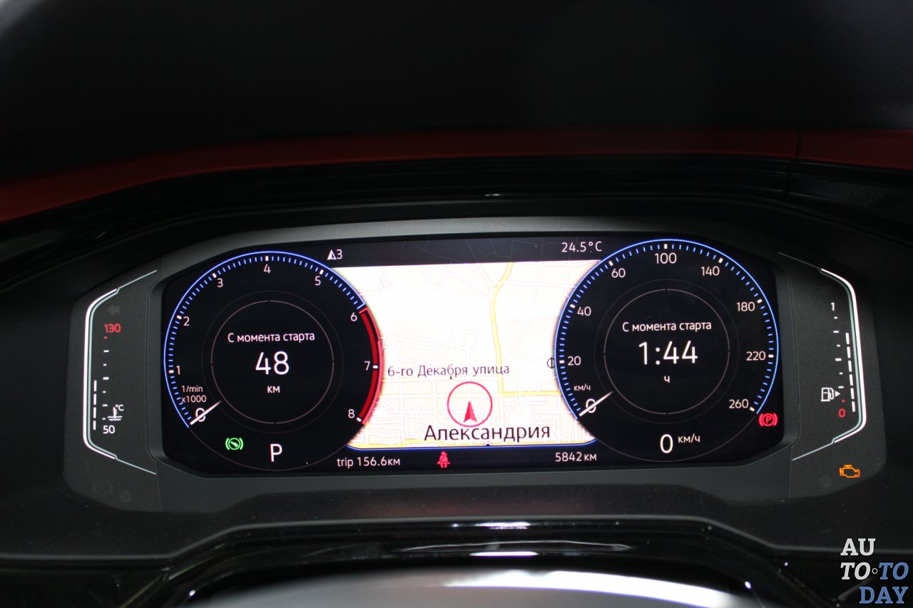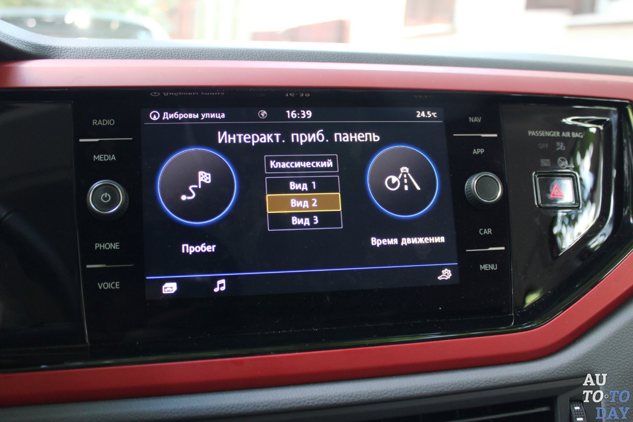 Эра двухдисплейных автомобилей дошла уже и до В-класса. Volkswagen Polo стал первой машиной, которая получила интерактивную приборную доску. Поставленный под углом большой 12,3-дюймовый экран даже солнечным днем не ловит блики солнца, его можно настроить как угодно, менять предназначение циферблатов и пр. Но самый крутой вариант – это развернутая на весь экран карта, на которой у тебя перед глазами открывается вся уличная сеть небольшого города с названиями улиц. Не знаю, хорошо это или плохо, но в небольших городах улицы еще обозначены старыми названиями.