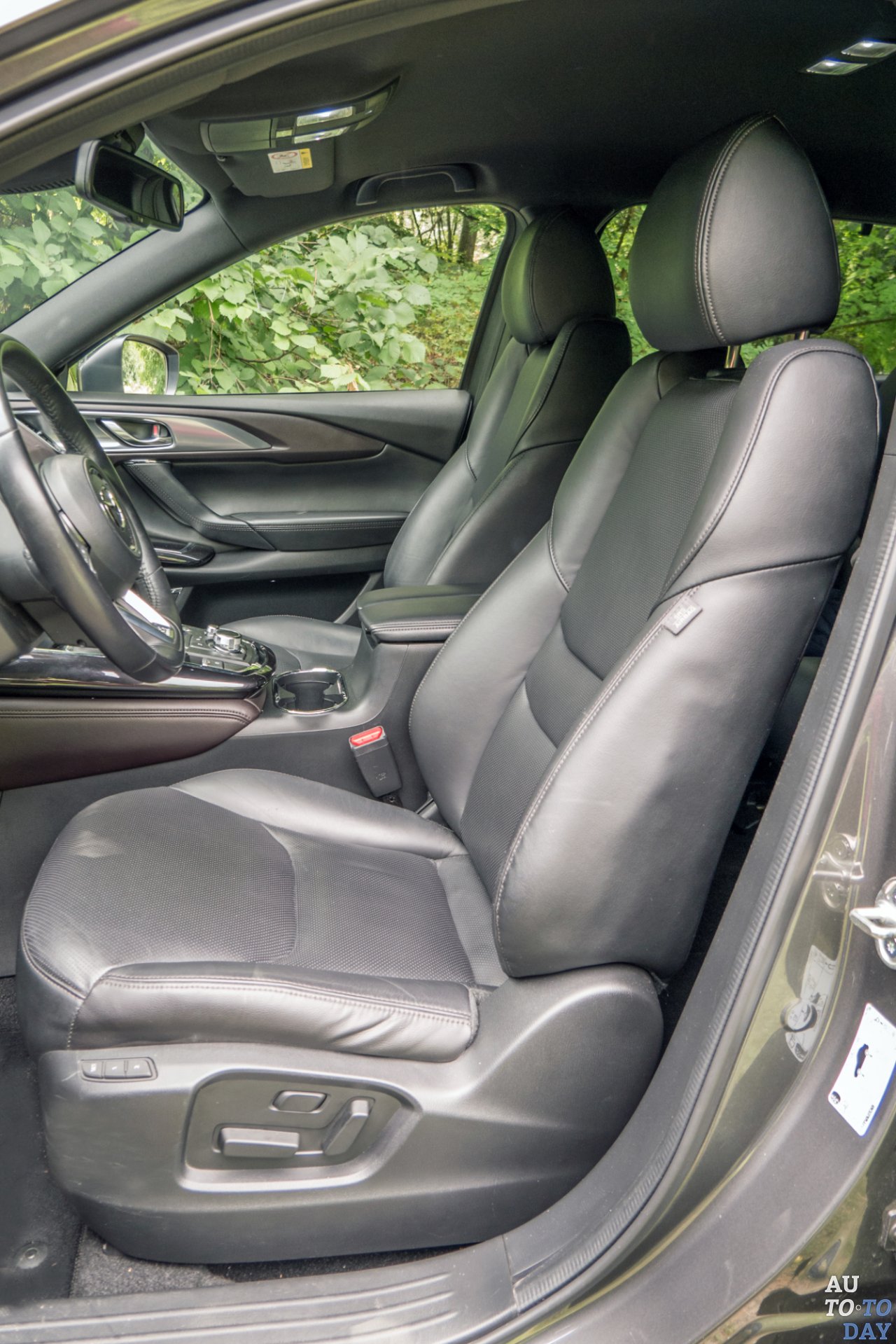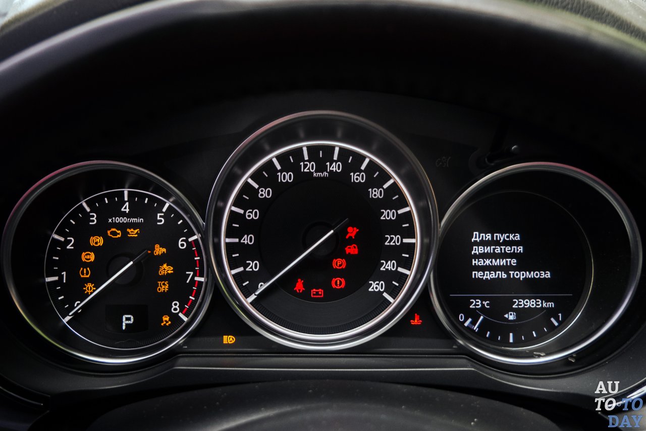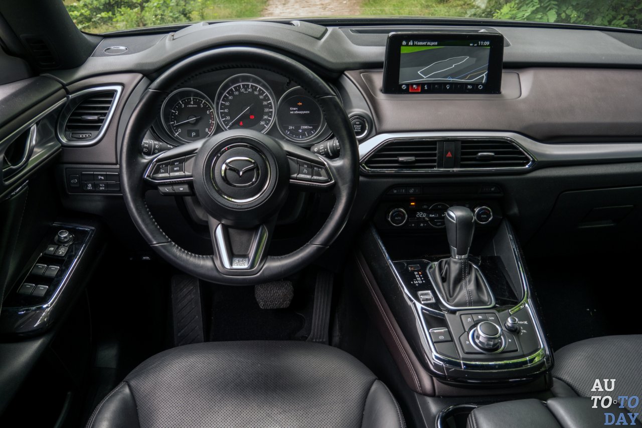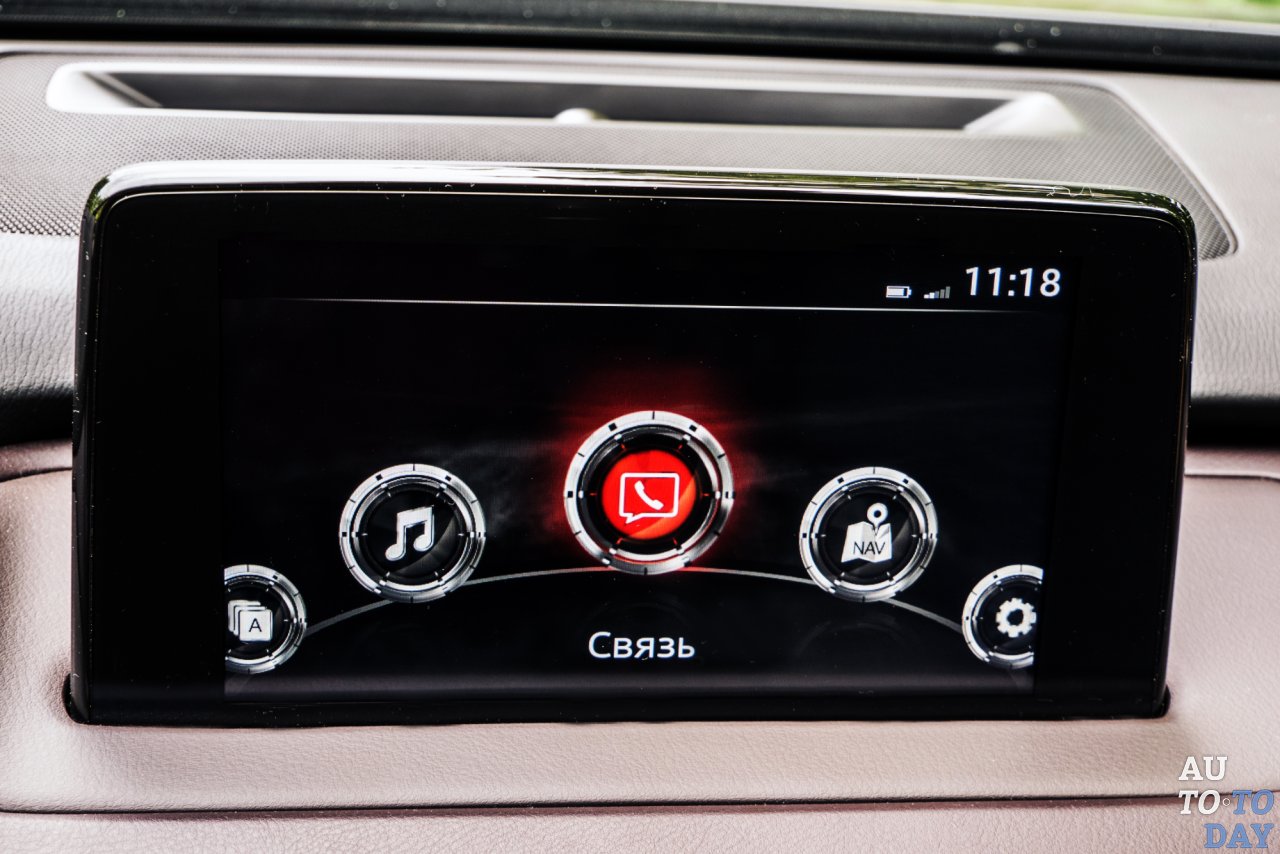 Интерьеры всех современных «Мазд» похожи, как две капли воды. Но японские дизайнеры и инженеры все же попытали немного выделить своего флагмана. В первую очередь, в глаза бросается широкая полоса из полированного алюминия на торпедо, идея которой продолжается на дверных картах. Также от меньших кроссоверов салон героя нашего теста выгодно отличается широким двухсоставным подлокотником, к которому не нужно тянуться локтем. 8-дюймовый дисплей с хорошо знакомой серо-красной графикой на скорости свыше 8 км/ч перестает быть сенсорным, и все управление передается на блок джойстика и клавиш на центральном тоннеле. Аудиосистема Bose создает торжественную атмосферу в салоне, позволяя настроить звук в конкретной зоне (спереди, или сзади).