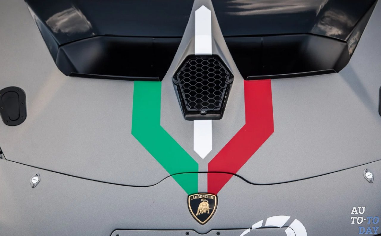 Эксклюзивное гоночное издание, открытое во время вчерашнего парада перед марафоном «24 часа Спа», имеет уникальную матово-серую отделку кузова, контрастирующую с глянцевыми зелеными акцентами, расположившимися на аэродинамических компонентах (передний сплиттер, боковые юбки и заднее крыло). Специалисты также реализовали трехцветную полосу, символизирующую итальянский флаг и проходящую от капота к воздухозаборнику, установленному на крыше.