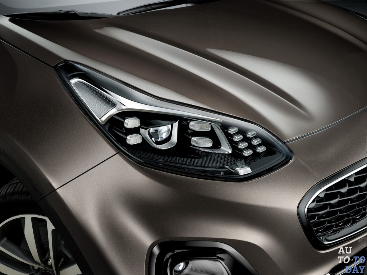 Автомобиль получил обновленные передние и задние бамперы, а также более эффектную оптику. В топ-версии GT-Line Sportage комплектуется полностью светодиодными фарами, в том числе и головного света. Противотуманные фары Ice Qube заметно преобразились, получив еще более агрессивный вид. Обновился и дизайн колесных дисков, которые будут доступны в 17- и 19-дюймовом вариантах.
