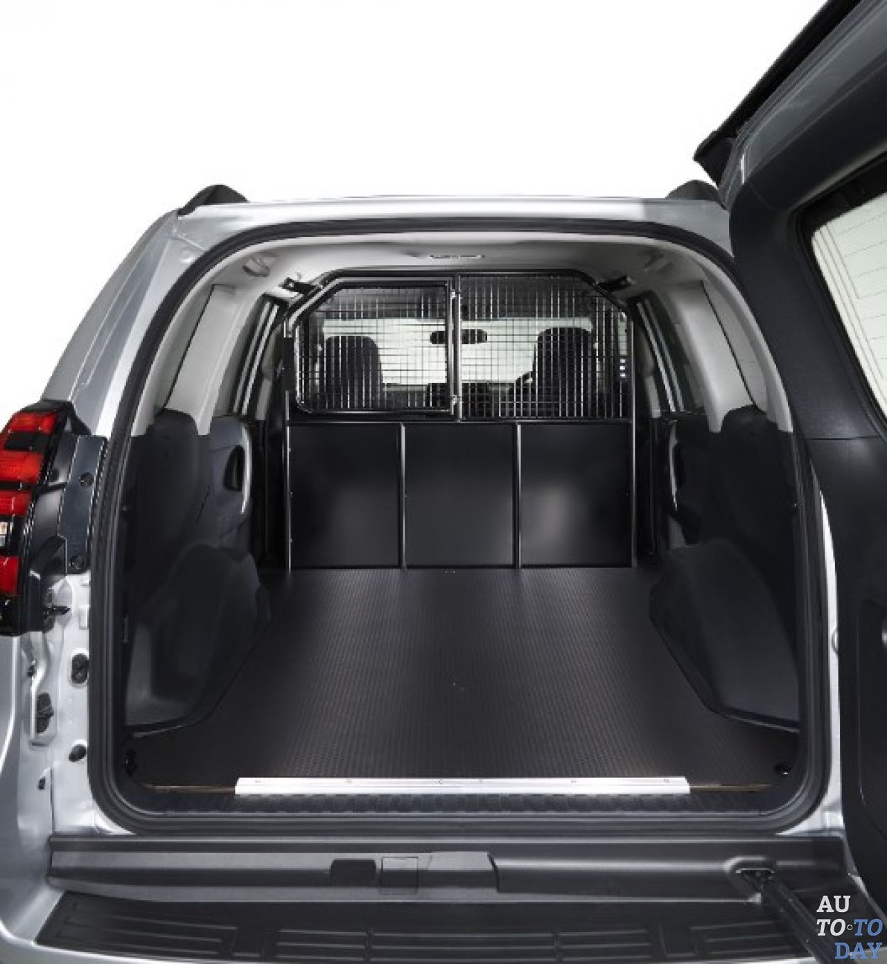 Что касается грузового пространства Toyota Land Cruiser, автомобиль оснащен от края до края прочным, нескользящим плоским поддоном, а также металлической перегородкой и специальным люком, облегчающим доступ. Пятидверные модели имеют полностью функционирующие задние двери, в то время как окна затемнены с помощью цветной пленки.