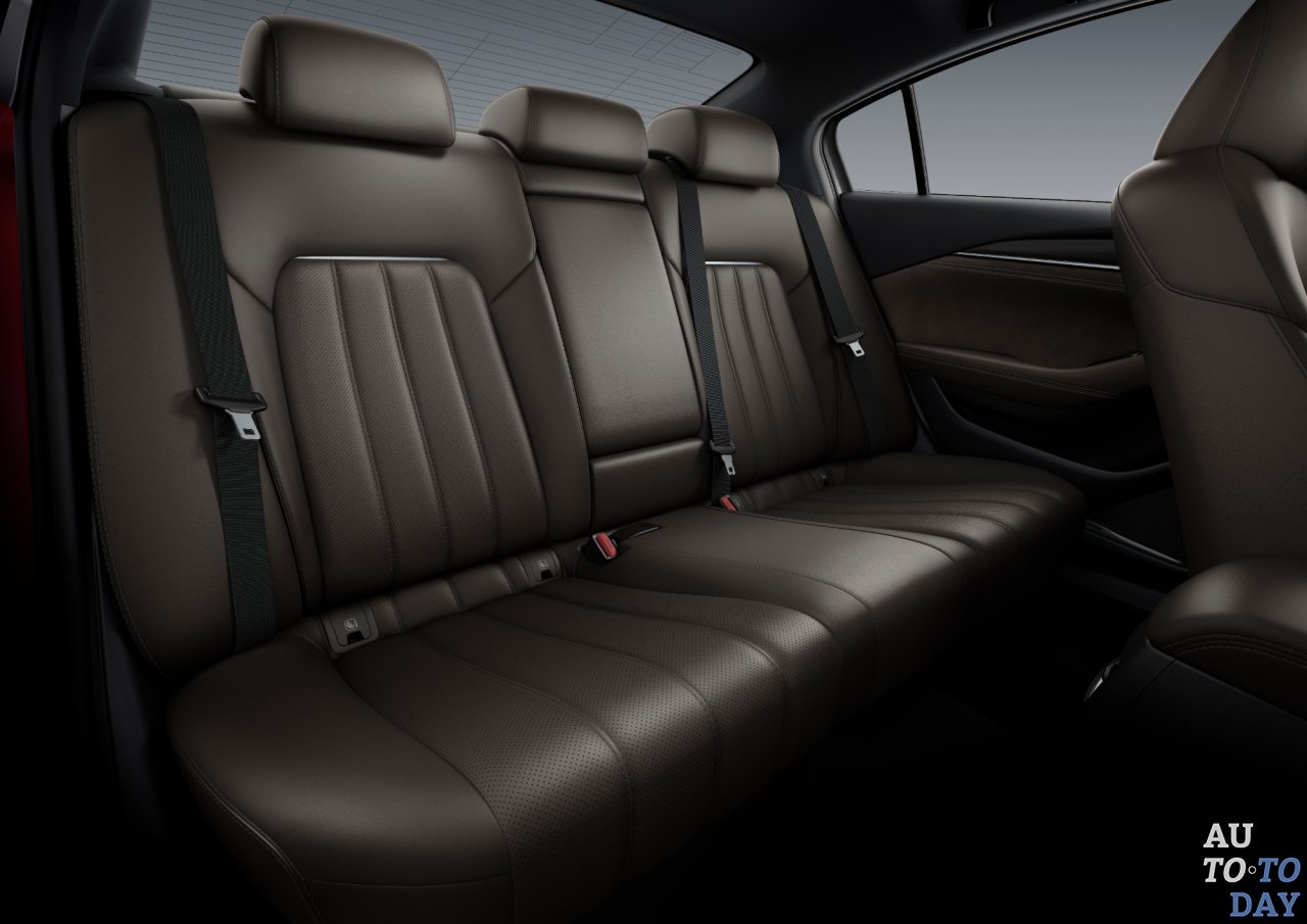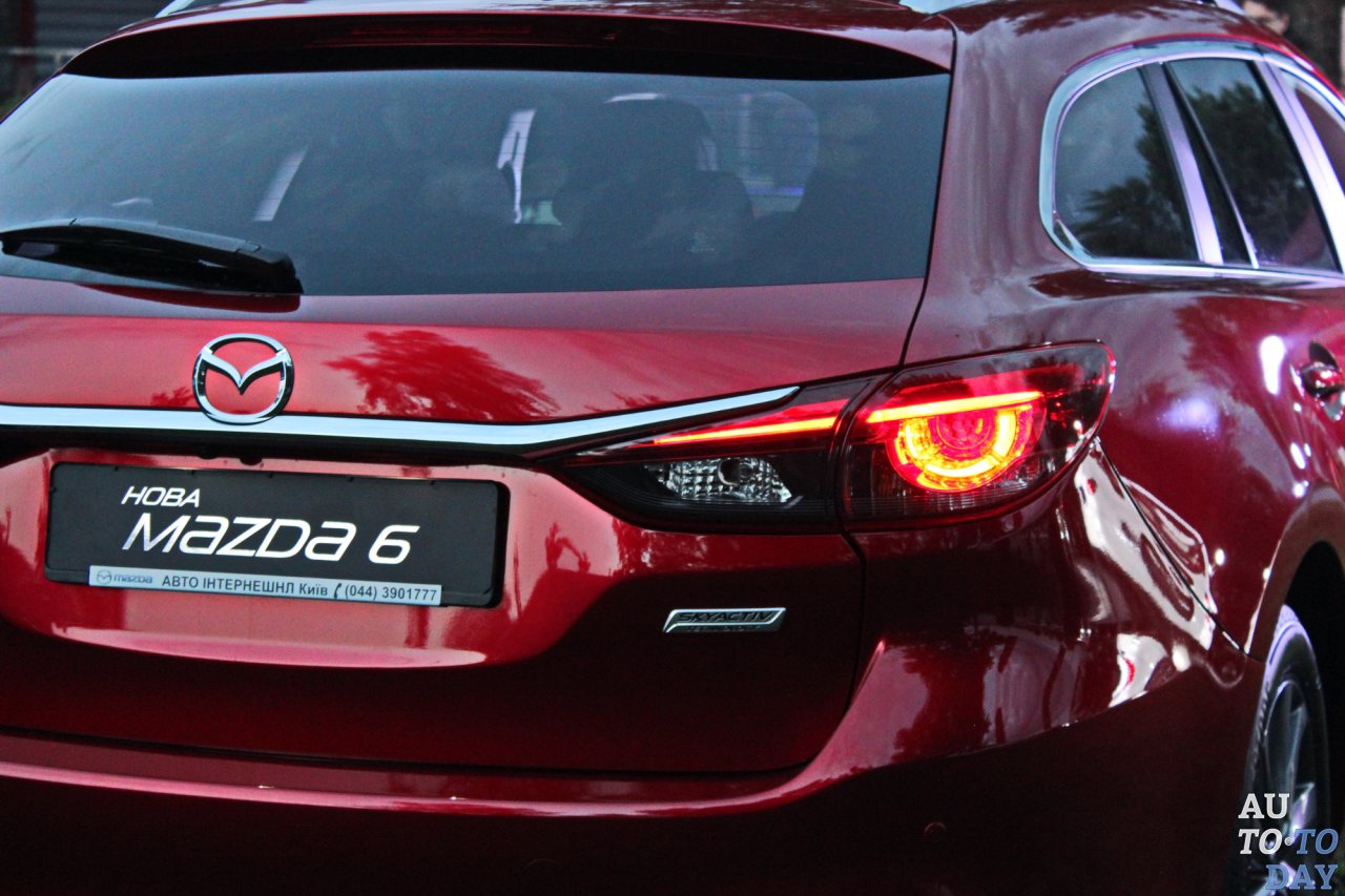 Экстерьер. Решетка радиатора стала большей площади, фары головного света получили новую форму и «начинку». «Мазда» также отказалась от отдельных противотуманных фар и встроила их в основную оптику. Задние фонари также получили новую форму и хромированный молдинг, проходящий сквозь них. Новый дизайн 17- и 19-дюймовых колесных дисков должны подчеркнуть выразительный профиль автомобиля. «Шестерка» также получила новый фирменный перламутровый цвет Soul Red Crystal, которым мы уже восхищались на Mazda CX-5.