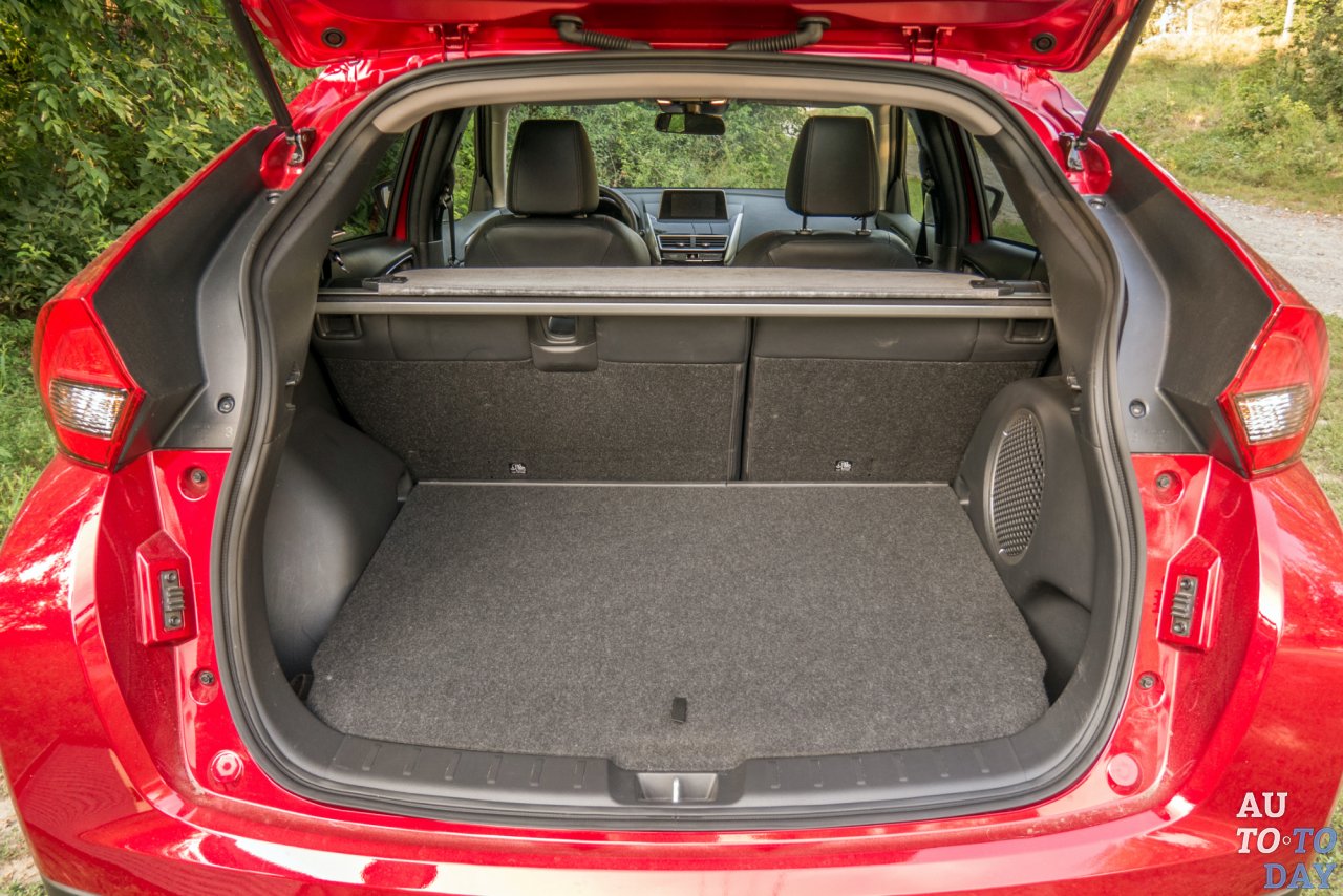 Багажник «Эклипса» – яркая черта купеобразного кроссовера. Чтобы сохранить пространство для пассажиров, его объем принесли в жертву. Он варьируется от 341 до 1058 литров при сложенном втором ряде. Под полом – большое запасное колесо.