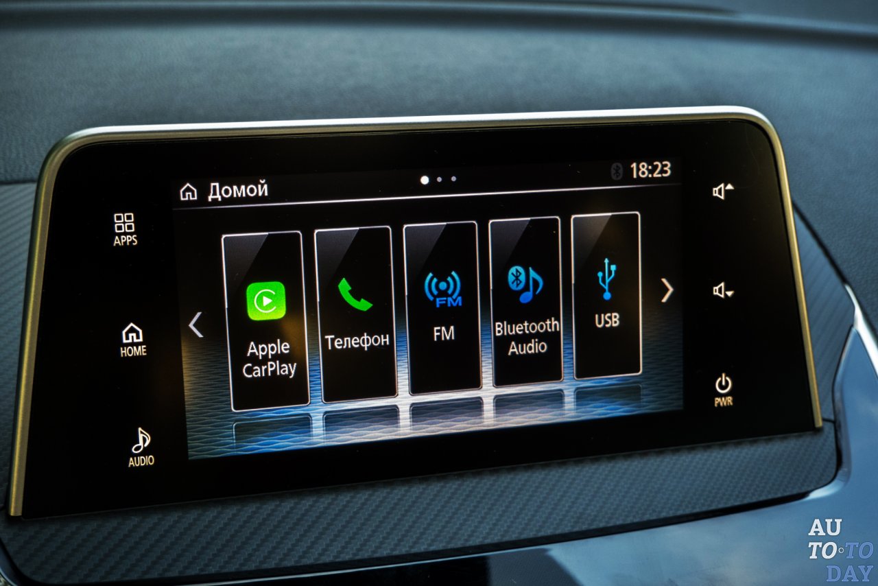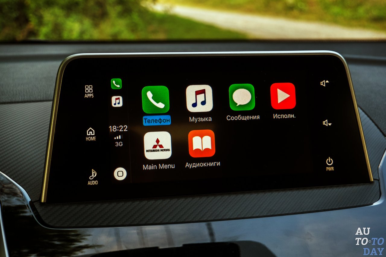 Главный прогресс Eclipse Cross в сравнении с соплатформенными родственниками – это мультимедийная система. Да, она не идеальна. У нее только 7-дюймовый сенсорный дисплей, хотелось бы иметь больше возможностей (навигацию, более широкие возможности по статистике использования автомобиля). Но инфотеймент поддерживает протоколы Apple CarPlay и Android Auto.