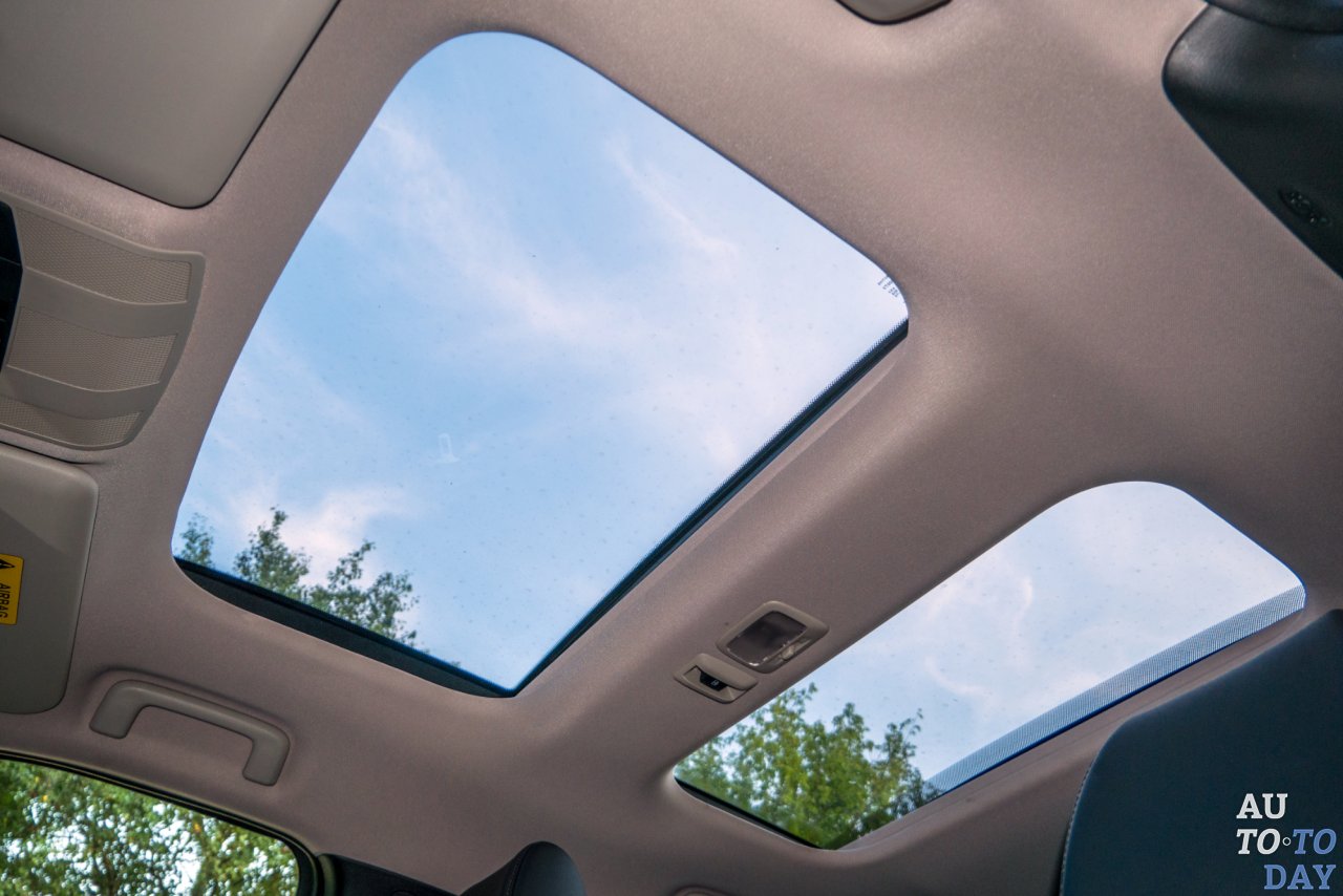 С установкой панорамной крыши японские инженеры пошли на интересный шаг – закрыли «глухое» пространство потолком и сделали две отдельные сдвижные шторки с электроприводом – для переднего (с люком) и заднего ряда. Такой ход помог улучшить звукоизоляцию, которая может страдать на авто с «панорамкой».