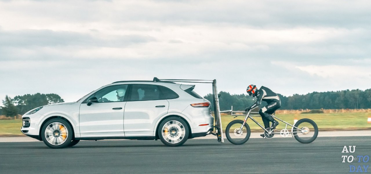 Ускориться до каких показателей велосипедисту удалось с помощью Porsche Cayenne Turbo 2018 года. Перед поездкой на специальному участку дороги, предоставленному для установления подобных рекордов, к указанному автомобилю был прикреплен велосипед. В результате после достижения Porsche 177 километров в час, его «прицеп» был отстегнут, и чемпион начал крутить педали, пока не достигнул 149 миль в час (240 км/ч).