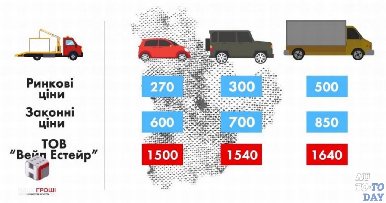 Из-за несостоявшегося тендера на нового перевозчика для эвакуации временно изъятых полицией транспортных средств эвакуацией автомобилей в Киеве продолжает заниматься фирма-прокладка «Вейп Естейр», пишет издание «Українська правда» со ссылкой на сюжет программы «Наши деньги с Денисом Бигусом». Аукцион должен был состояться 22 августа, но на него не пришел ни один участник.