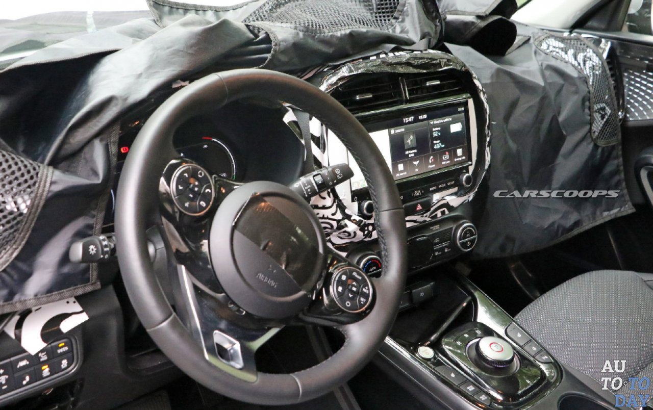 Переработанный электрический Soul все еще проходит испытания и скрывает стилистические особенности под пленкой камуфляжа. Однако это не мешает фото-шпионам заглянуть во внутрь транспортного средства и запечатлеть интерьер.
