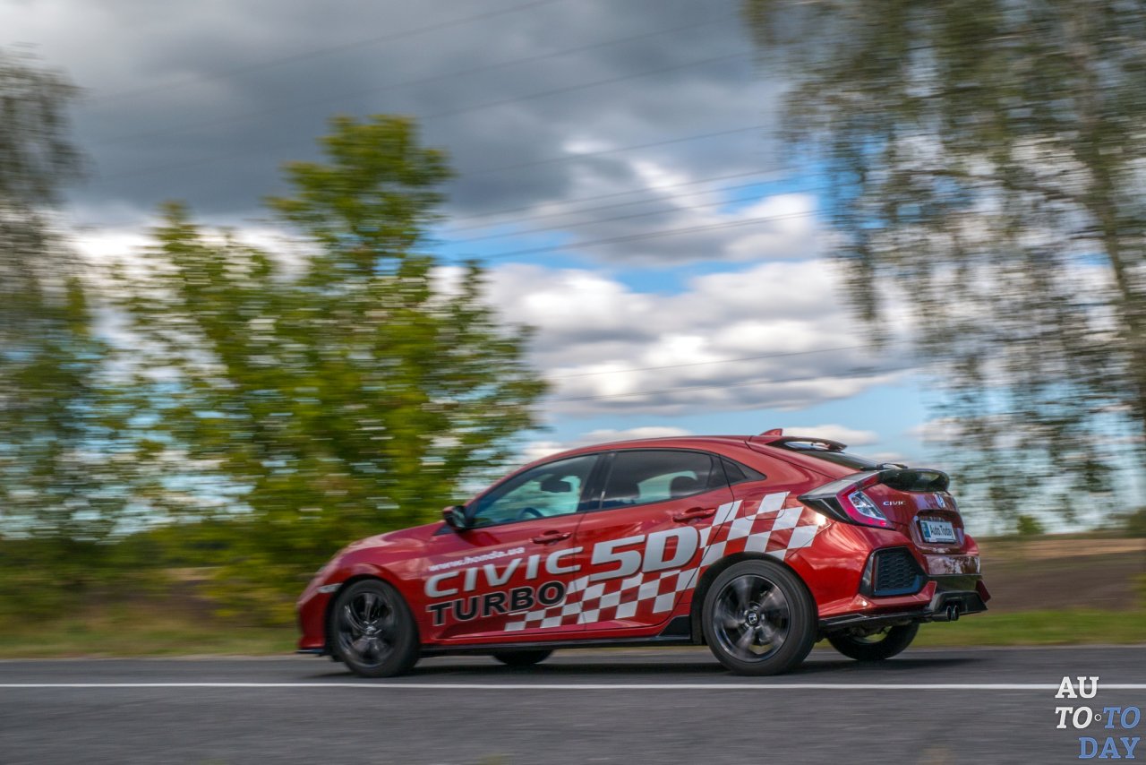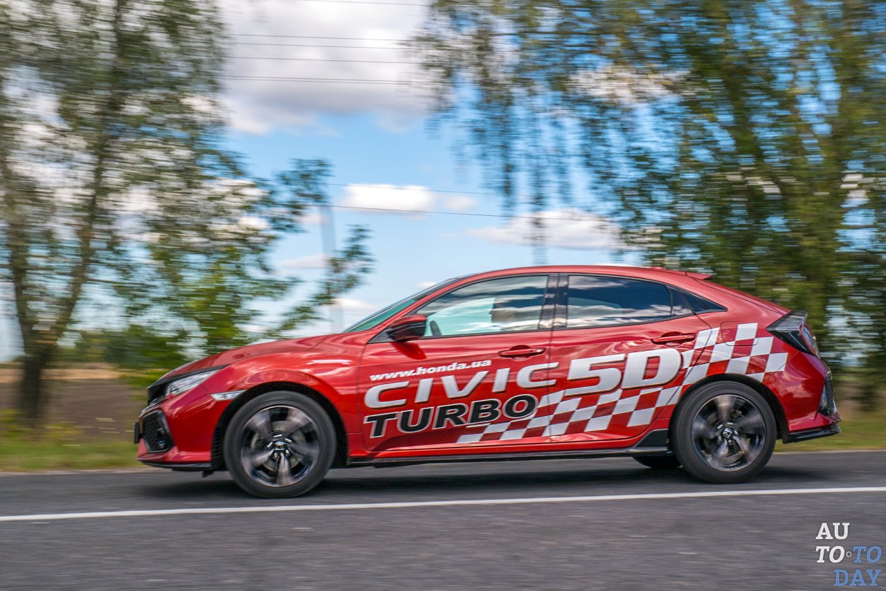 На украинском рынке, как и всей Европе, пятидверный Honda Civic предлагается с парой турбированых бензиновых силовых агрегатов объемом 1,0 (129 л. с.) и 1,5 литра (182 л. с.) с тремя и четырьмя цилиндрами соответственно. Под фигурным капотом тестового автомобиля упрятался более мощный вариант. Интересно, что раньше на «Сивиках» турбомоторов не было. Началась новая эра.