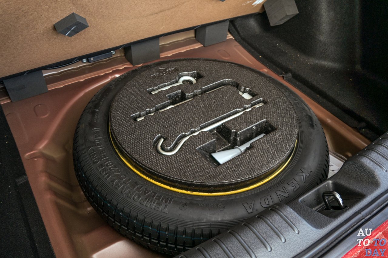 Объем багажника в 420 литров – приятный сюрприз, учитывая сильно покатую крышку багажника. В отличие от громоздких полочек у конкурентов, японские дизайнеры интерьера придумали складную компактную шторку. Она сматывается буквально в рулончик, и ей всегда найдется место в багажном отсеке. Под полом разместилось временное запасное колесо, а в органайзерах – дорожный набор.