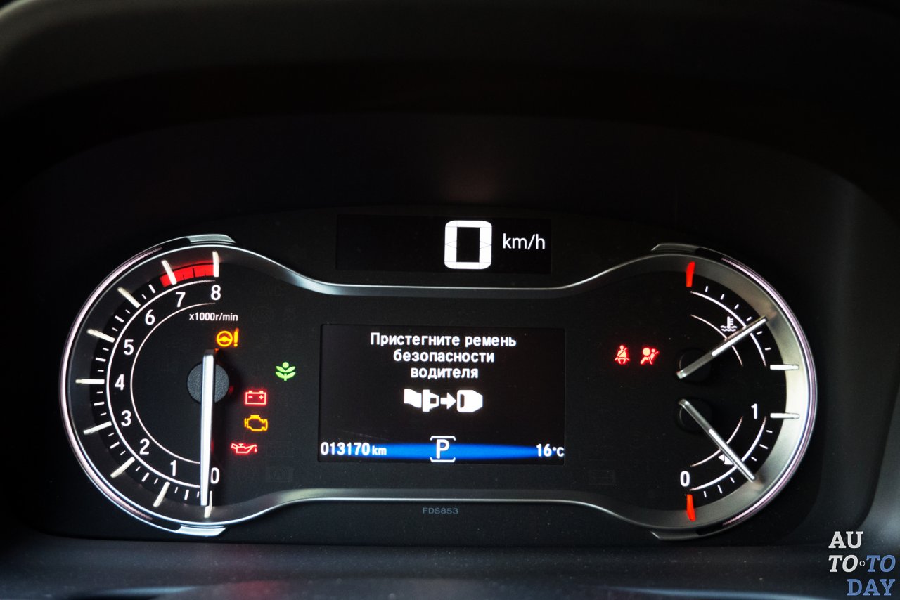 Щиток приборов имеет комбинированный дизайн. Аналоговые тахометр, термометр и указатель топлива соседствуют с цифровым спидометром и горизонтальным цветным экраном бортового компьютера.