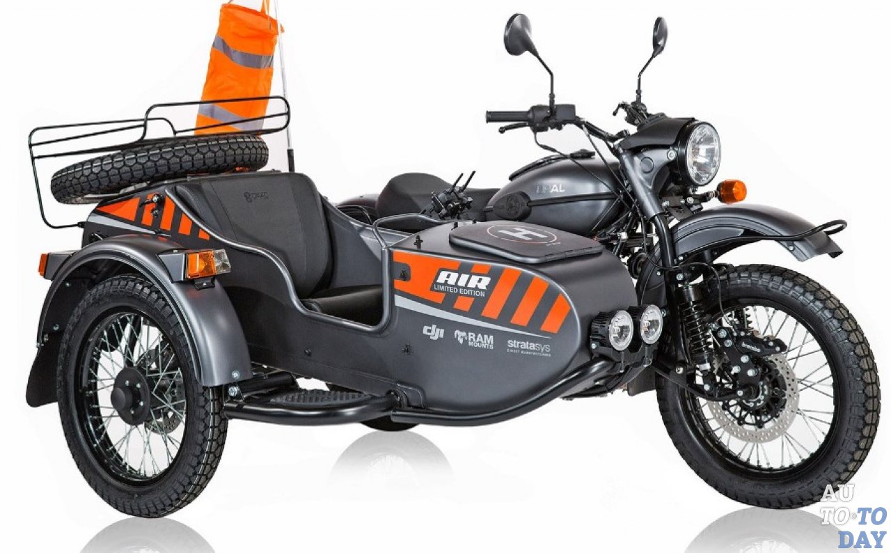 Лимитированный Ural Air Limited Edition является произведением российской компании, специализирующейся на мотоциклах. Транспортное средство комплектуется не только коляской, но и дроном DJI Spark, установленным в передней части, портом USB-зарядки для ранее упомянутого устройства, дополнительными светодиодными противотуманными фарами, запасным колесом, шиной, канистрой и набором инструментов с лопатой. Все это снаряжение позволяет обеспечить интересное приключение и возможность одновременного управления дроном (чем, конечно же, будет заниматься не водитель).