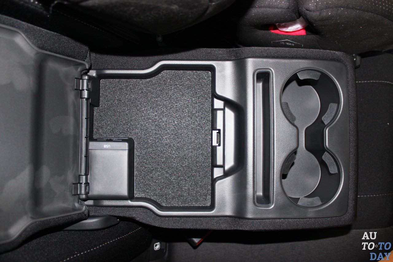 В заднем подлокотнике - несколько разнообразных ниш и порты зарядки.