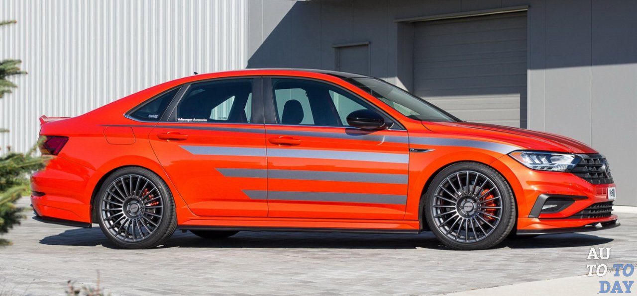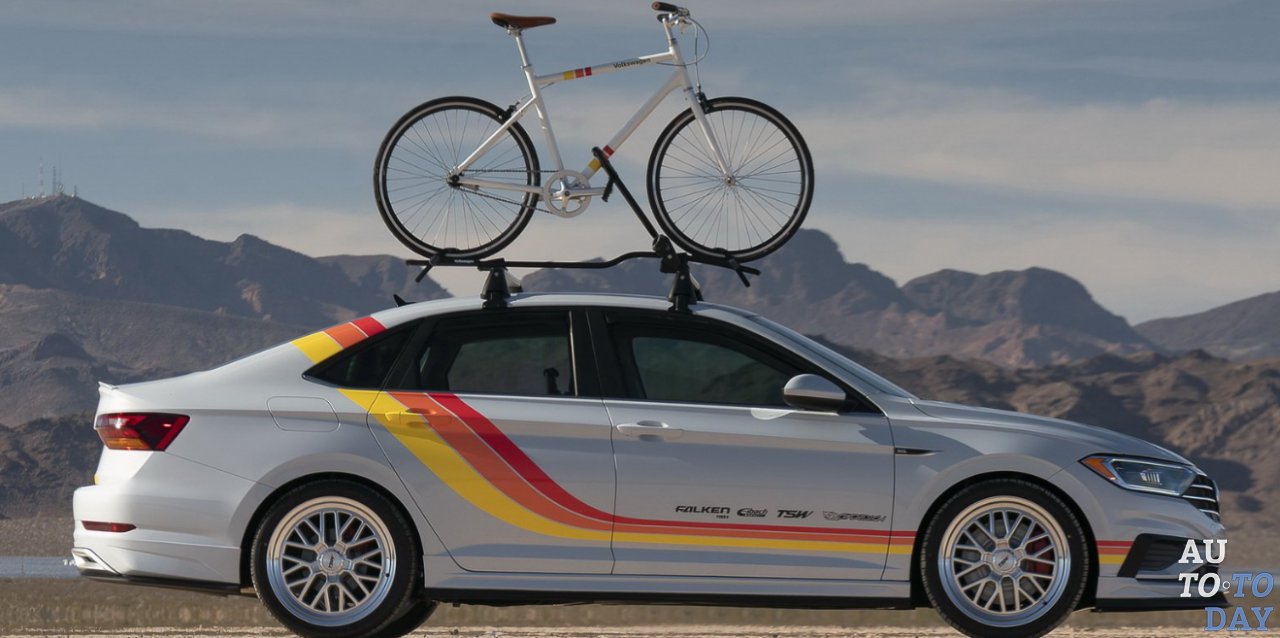 Этот Jetta был вдохновлен аксессуарами Jetta/Golf 80-90-х годов и включил 19-дюйовые ретро-колеса TSW Hockenheim S, задний спойлер, уникальную внешнюю отделку, установку на крышу для крепления велосипедов и понижающие пружины EIBACH. Внутри также появится двухцветная отделка, полный комплект систем и технологий, обеспечивающий комфорт и безопасности.