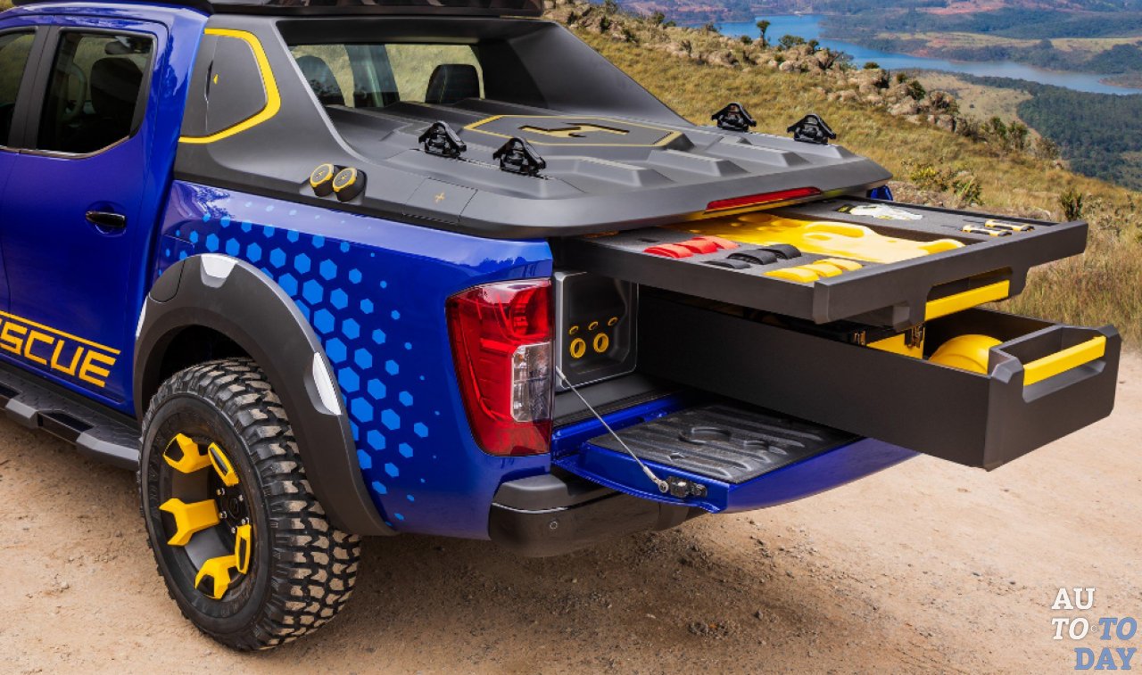 Помимо батарейных блоков, Frontier Sentinel имеет вместительный отсек для хранения с выдвижными ящиками (предназначен для хранения вещей, необходимых для проведения спасательных работ), специальный летательный аппарат (дрон), кожаные сидения с контрастными желтыми акцентами и привлекательную внутреннюю отделку, сочетающую яркий желтый цвет с более мрачными оттенками. Nissan не упоминает технические характеристики, но модель, согласно предположениям, использует 2,3-литровый дизельный двигатель, рассчитанный на 157 или 187 лошадиных сил. Агрегат подключен к семиступенчатой автоматической коробке передач и системе полного привода.