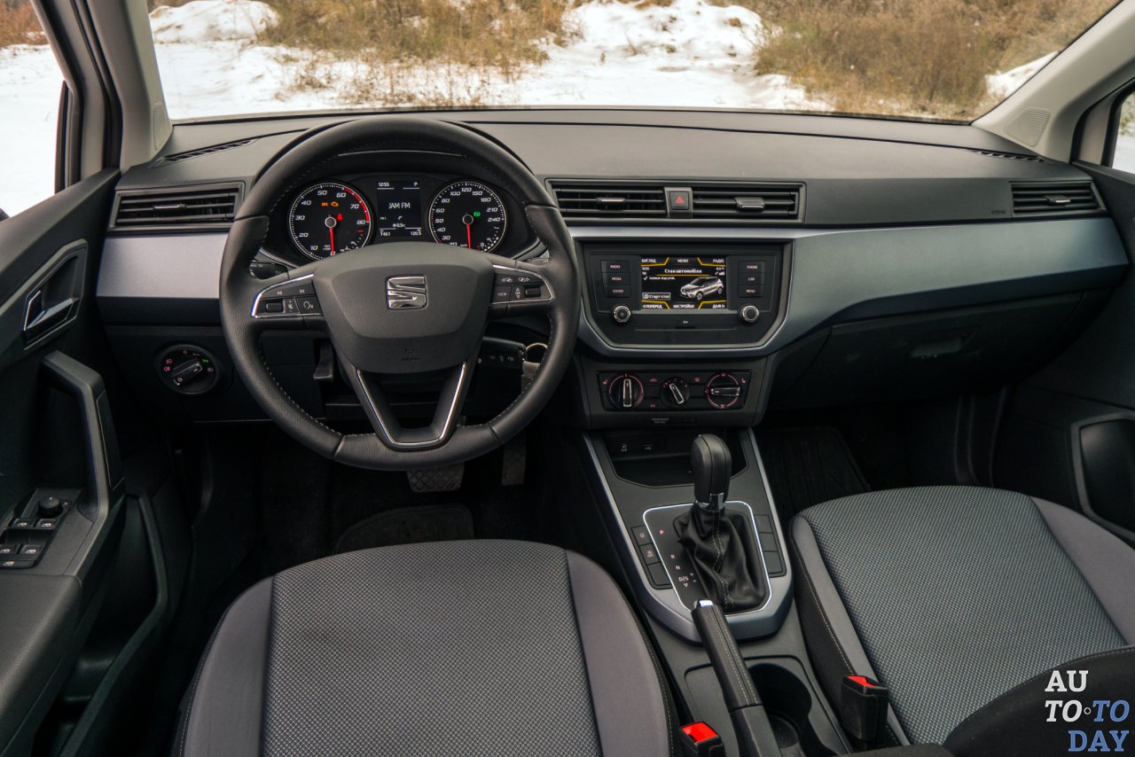 Родственная «Ибица» на поверку оказалась немного меньше. Arona на 79 мм длиннее. По нашим ощущениям, эта прибавка пришлась на багажный отсек. Спереди отличить автомобиль в различных исполнениях можно по решетке радиатора – их предложено целых три варианта. Высота автомобиля на 99 мм больше, чем у городского хэтчбека, из них 15 мм приходится на прирост дорожного просвета. Сам же клиренс у «испанца» насчитывает 178 мм, что очень недурно для переднеприводного кроссовера с приставкой «городской». Менее заваленное лобовое стекло, чем у Ibiza, добавило полезного объема салону авто.