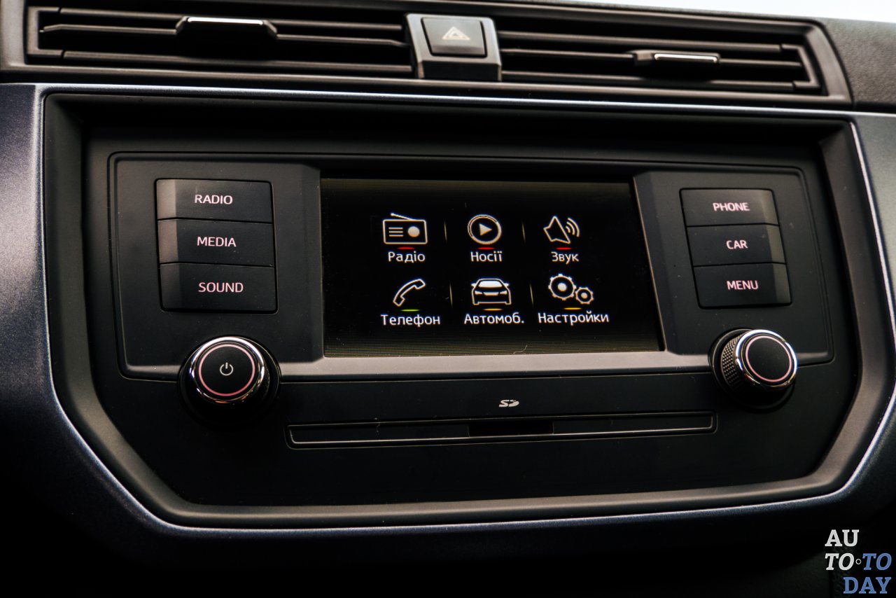 В зависимости от модификации, в салоне SEAT Arona, на центральной консоли может располагаться 5-, или 8-дюймовый сенсорный дисплей. Мы тестировали машину с меньшим экраном. Конечно, он не отличается высокой четкостью картинки, но он полноценно цветной и меню красиво проработанное. На него выводится информация с датчиков парктроника. Кстати, и звук, и визуальное отображение очень точное. За доплату можно установить 8-дюймовый сенсорный дисплей. Его мультимедийная система будет поддерживать протоколы Apple CarPlay и Android Auto, выводить на монитор картинку с камеры заднего вида и многое другое.