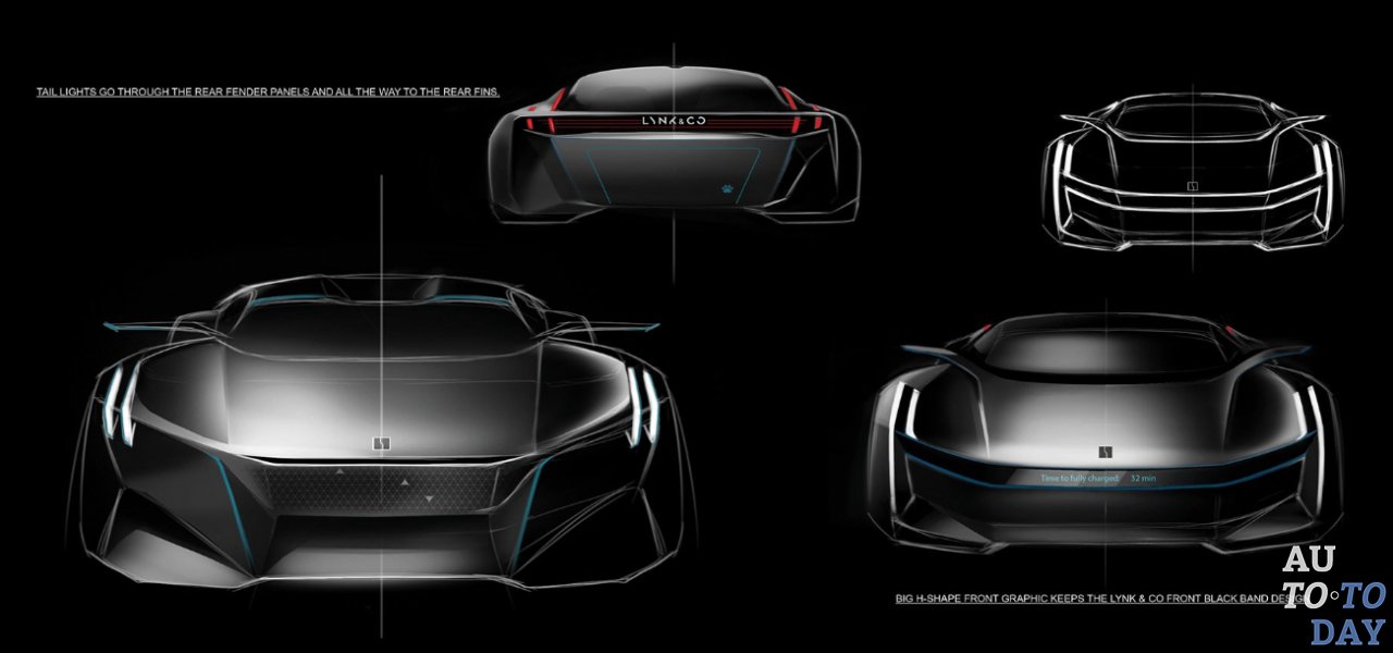 Тянбо, создавая графический образ, ориентировался на молодых пар, имеющих домашних питомцев (например, собак). Следовательно, художник наградил купе Lynk & Co вместительным багажным отсеком и относительно просторным салоном, рассчитанным на двух взрослых пассажиров. Также в качестве оснащения он использовал электрическую силовую установку, предоставляющую больше свободного пространства спереди и сзади. С точки зрения стиля, дизайнер решил полностью не переносить стиль современных Lynk & Co и наградил автомобль закругленными фарами (заменяют тонкие светодиодные полосы), небольшими задними фонарями и стоп-сигналами, растянутыми вдоль заднего стекла.