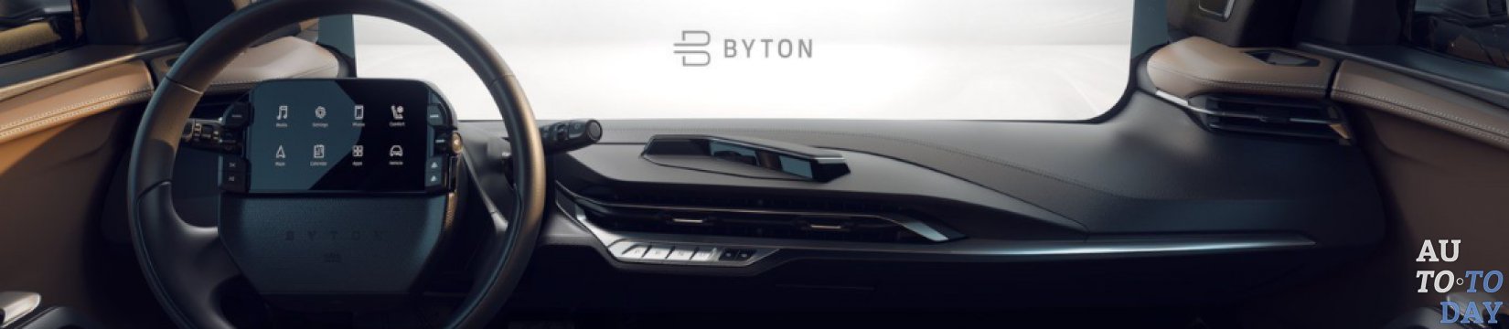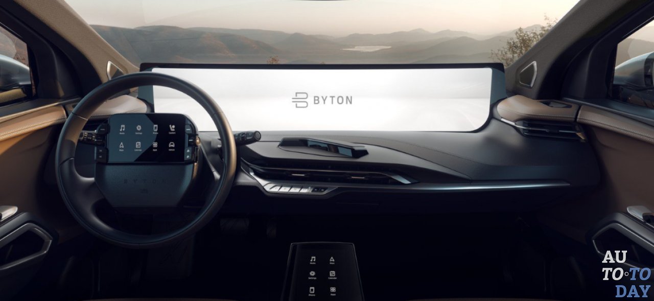 В первую очередь внимание привлекает огромный 48-дюймовый дисплей Byton M-Byte, охватывающий практически всю ширину автомобиля. Он выступает в качестве основного средства для отображения информации о машине, в том числе скорости, заряда батареи, дальности, навигационные карты, данные систем мониторинга состояния водителя, а также может использоваться для отображения развлекательного контента и воспроизведения музыки.