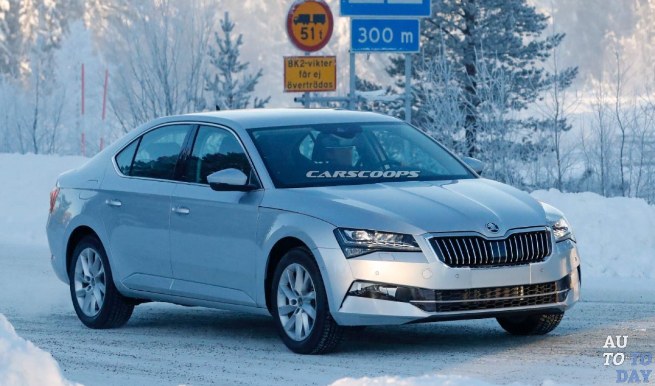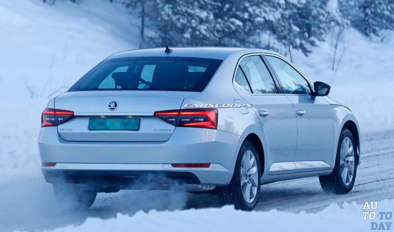 Тестовый Skoda Superb, появившийся на общественных дорогах еще летом прошлого года, продолжает испытания только с меньшим количеством камуфляжа.