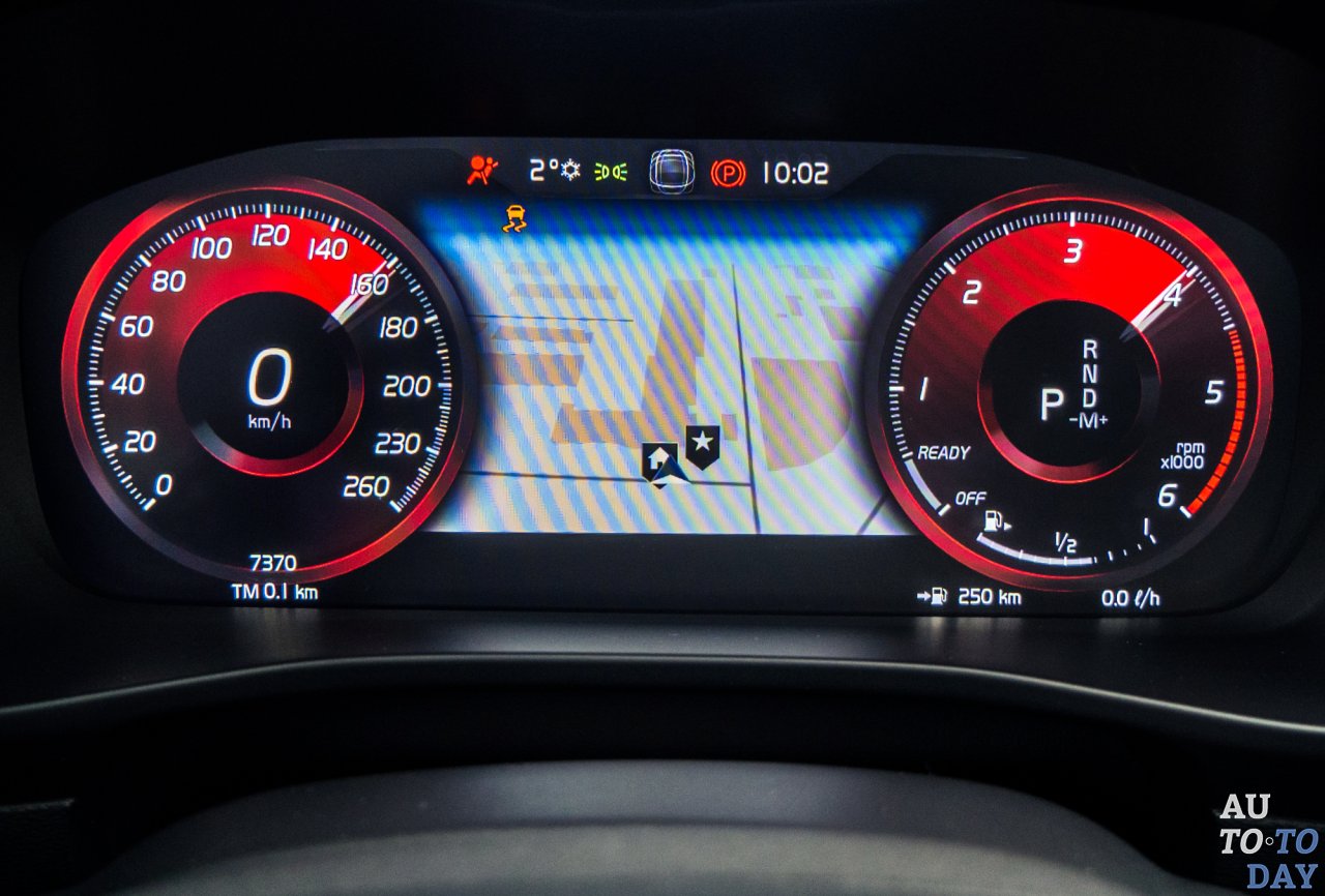 Среди множества систем активной безопасности стоит выделить предвестника автопилота – ассистента Volvo Pro Pilot 2. «Пропилот» объединяет в себе адаптивный круиз контроль, систему удержания в полосе, адаптивную головную оптику и другие. Если говорить о возможностях «помощника», то он четко ведет автомобиль в пределах полосы на трассе, самостоятельно тормозит на светофорах и продолжает движение, соблюдая дистанцию до впереди едущего транспорта. При этом откинуться назад и читать книжку не получится – машина постоянно следит за наличием рук на руле и требует держаться за «баранку». Под руководством «пилота» кроссовер едет плавно, но на руле постоянно ощущаются микроподруливания, которые на траектории движения не отражаются.