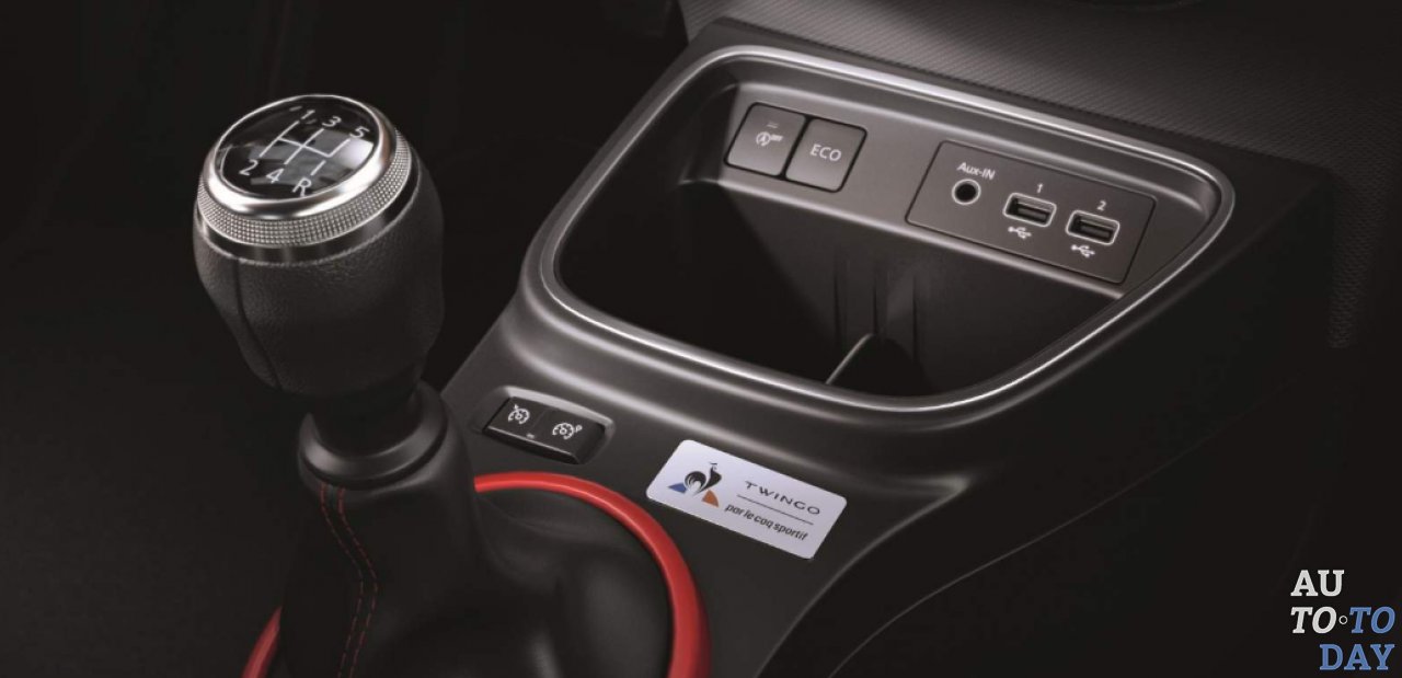 Внутри Twingo Le Coq Sportif 2019 года приветствует пассажиров яркими цветами и высококачественными материалами, дополняющими полированную алюминиевую табличку с надписью «Twingo by le coq sportif» (расположена у основания рычага переключения передач). Также автомобиль включает новую 7-дюймовую мультимедийную систему Renault Easy Link с поддержкой подключения Apple CarPlay и Android Auto, систему автоматического кондиционирования, камеру заднего вида, задние парковочные датчики, автоматические фары и дворники. На выбор клиента предлагают следующие цвета кузова: Quartz White, Crystal White, Lunar Grey и Star Black.