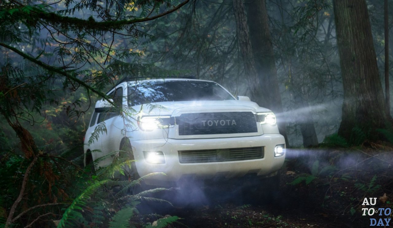 Sequoia TRD Pro получил переработанную решетку радиатора, светодиодные фары и противотуманные фары, специальную переднюю защитную пластину и крепления на крыше, 18-дюймовые колеса BBS, покрытые шинами 275/65, и впечатляющую выхлопную систему. Для клиентов предложили четыре цветовых варианта: Army Green, Super White, Midnight Black Metallic и Magnetic Gray Metallic.