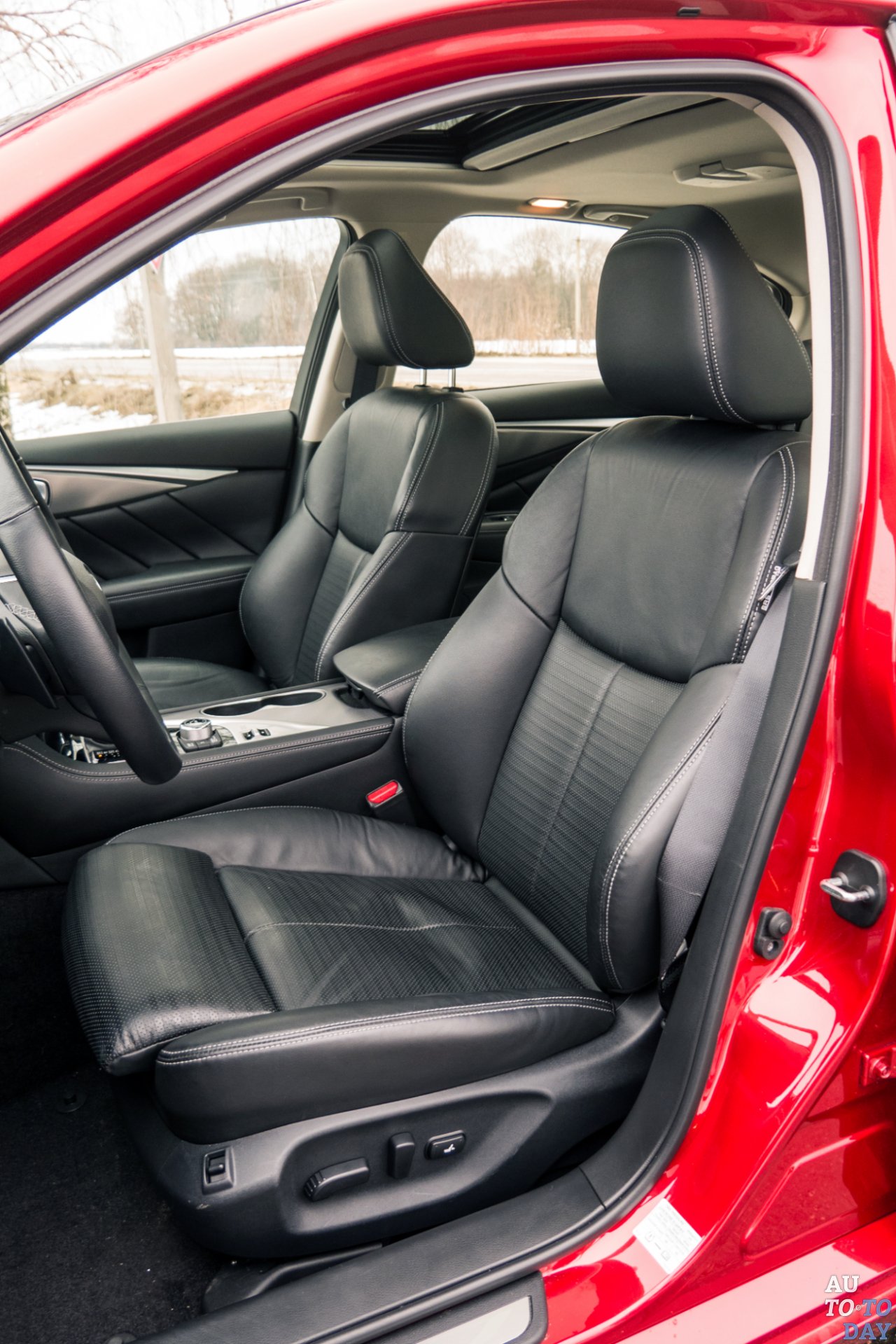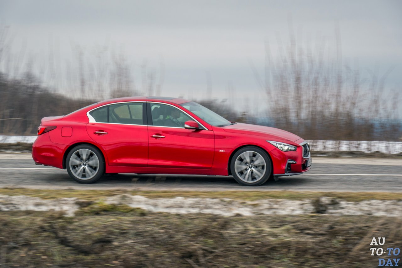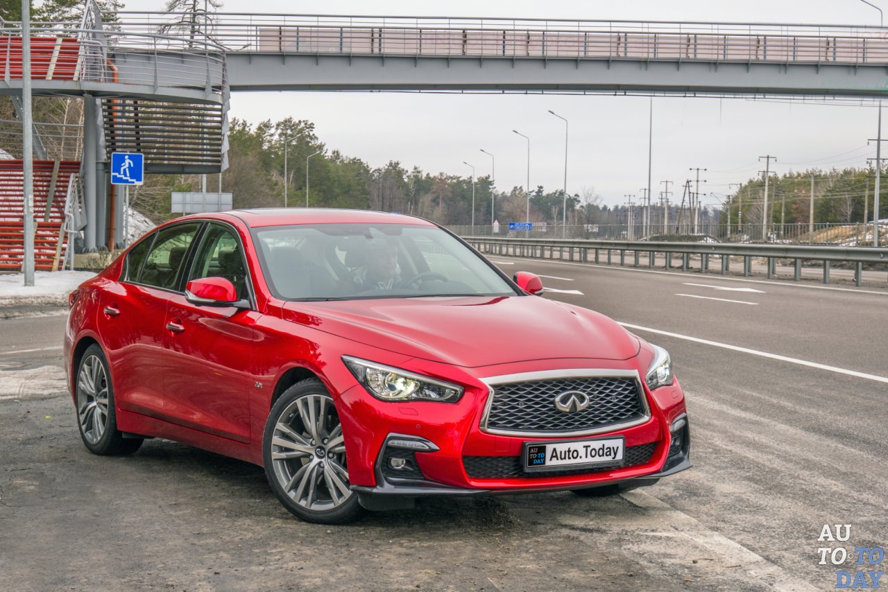 К нам на тест меньший из седанов Infiniti попал в ярко-красном цвете, с приставкой «s» в индексе (которая отвечает за эмоциональный обвес) и турбированным бензиновым двигателем объемом 2,0 литра.