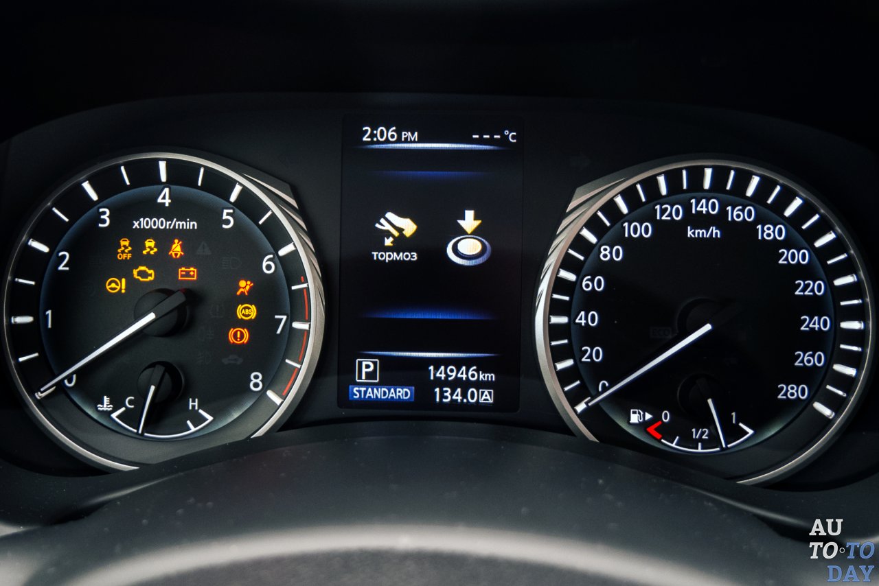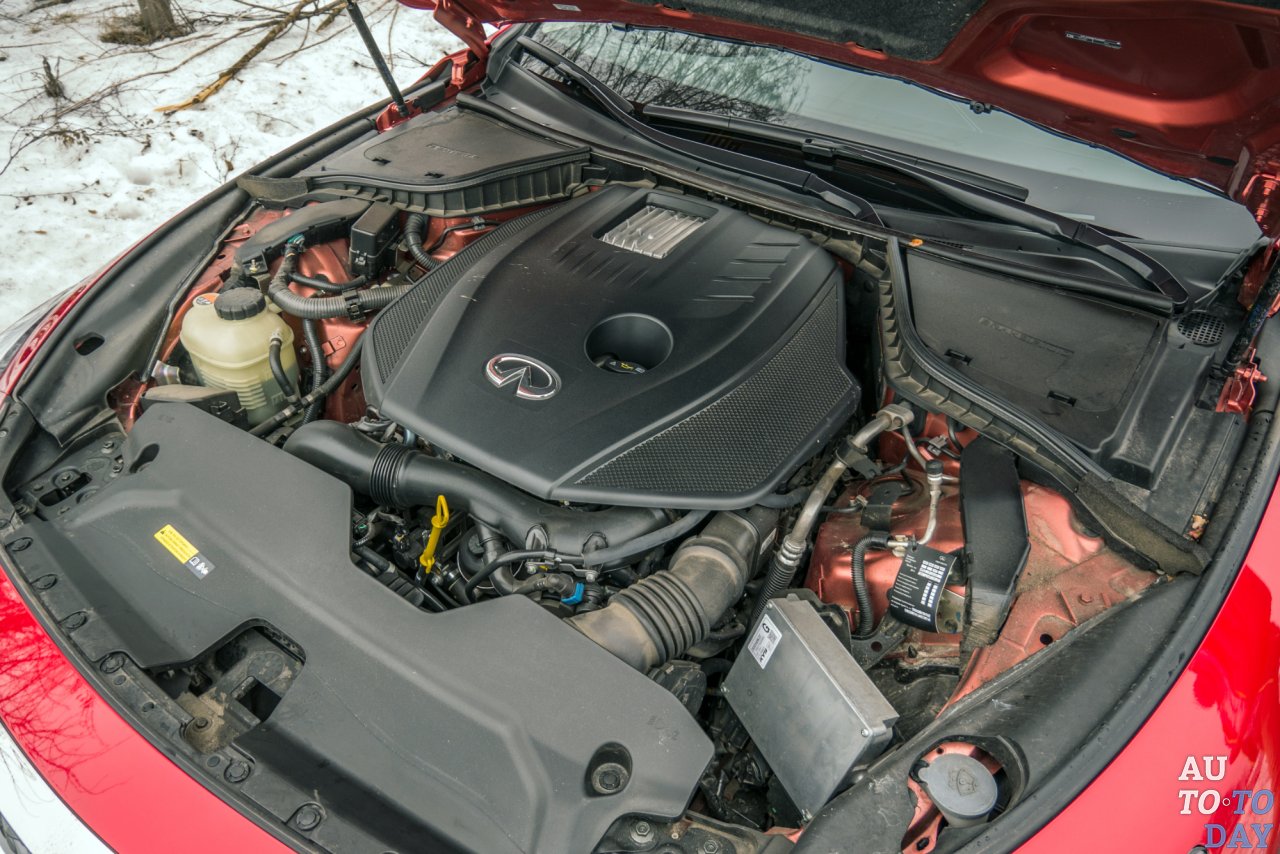 Бензиновый силовой агрегат с индексом M274 DE20 – это плод кооперации японской компании и Mercedes-Benz. «Мерсовский» турбомотор объемом 2,0 литра представили в 2012 году. На «Инфинити» мотор развивает 211 л. с. мощности и 350 Нм максимального крутящего момента. В режимах «Спорт» и «Стандарт» мотор очень живо реагирует на нажатие педали газа. В 7,3 секунды до первой «сотни» веришь легко. Если же хочется спокойствия, вам в настройки режима «Эко». По городу седан может укладываться в честные 8 литров на 100 км пробега. Если же ни в чем себе не отказывать, то вряд ли расходомер превысит отметку в 11 литров «95-го».