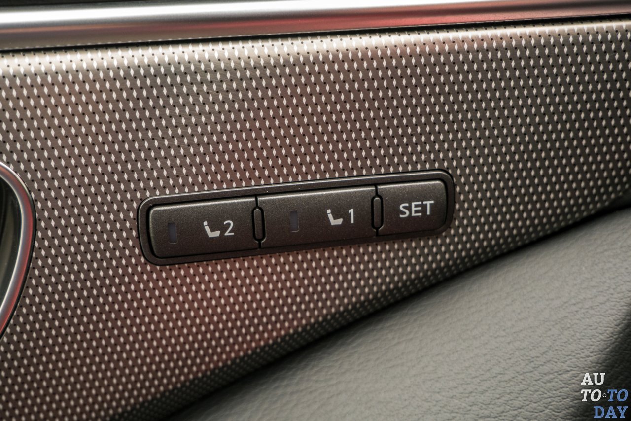 Кресло водителя имеет электронные регулировки, двухпозиционную память. Из необычных и очень удобных настроек не могу не отметить регулировку объема поясничной поддержки спины и длину подушки. Правда, низкая линия крыши и наличие люка создают некторый дискомфорт при посадке водителям с ростом выше 185 см. При правильной посадке у рослого драйвера между головой и потолком зазор составит буквально пару-тройку сантиметров.